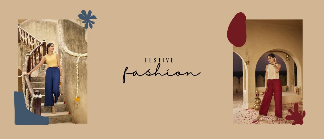 And there you have it, folks – a festive wardrobe makeover that's as exciting as the celebrations themselves! Remember, fashion is all about expressing yourself, and wide-leg bottoms are your canvas for creativity. Whether you're grooving to the beats of Navaratri, lighting up Diwali, or pandal-hopping during Durga Puja, these wide-leg wonders will keep you comfortable and chic.