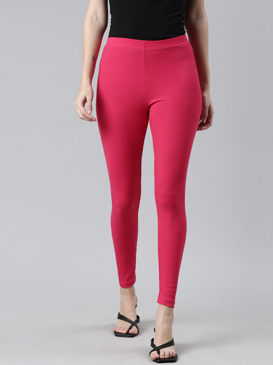 Young Fuchsia Drop Needle Fabric Rib Leggings