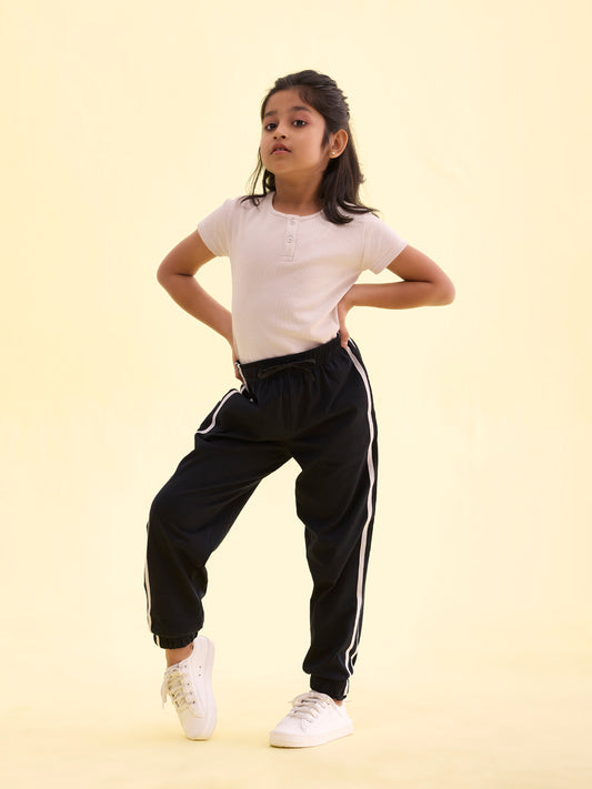 Black Cotton Stretch Two Tone Side Stripe Track Pant