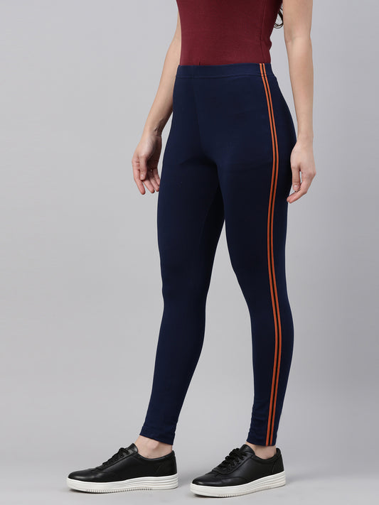 Navy Cotton Stretch Side Stripes Active Leggings