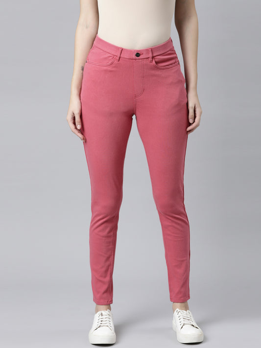 Fuchsia Cotton Polyester Super Stretch Jeggings