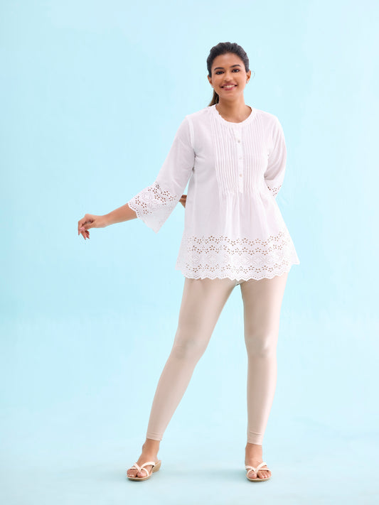 Beige Cotton Stretch Ankle Length Leggings