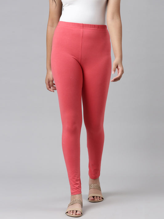 Light Coral Cotton Stretch Ankle Length Leggings