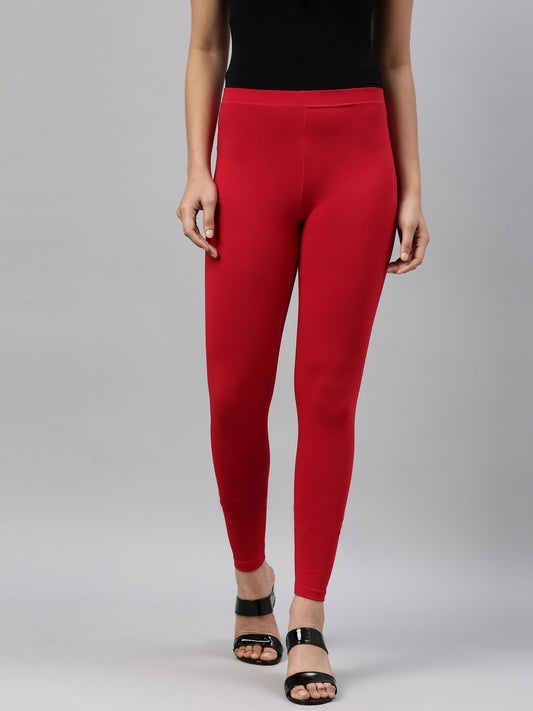 Dark Red Cotton Poly Stretch Knit Jeggings