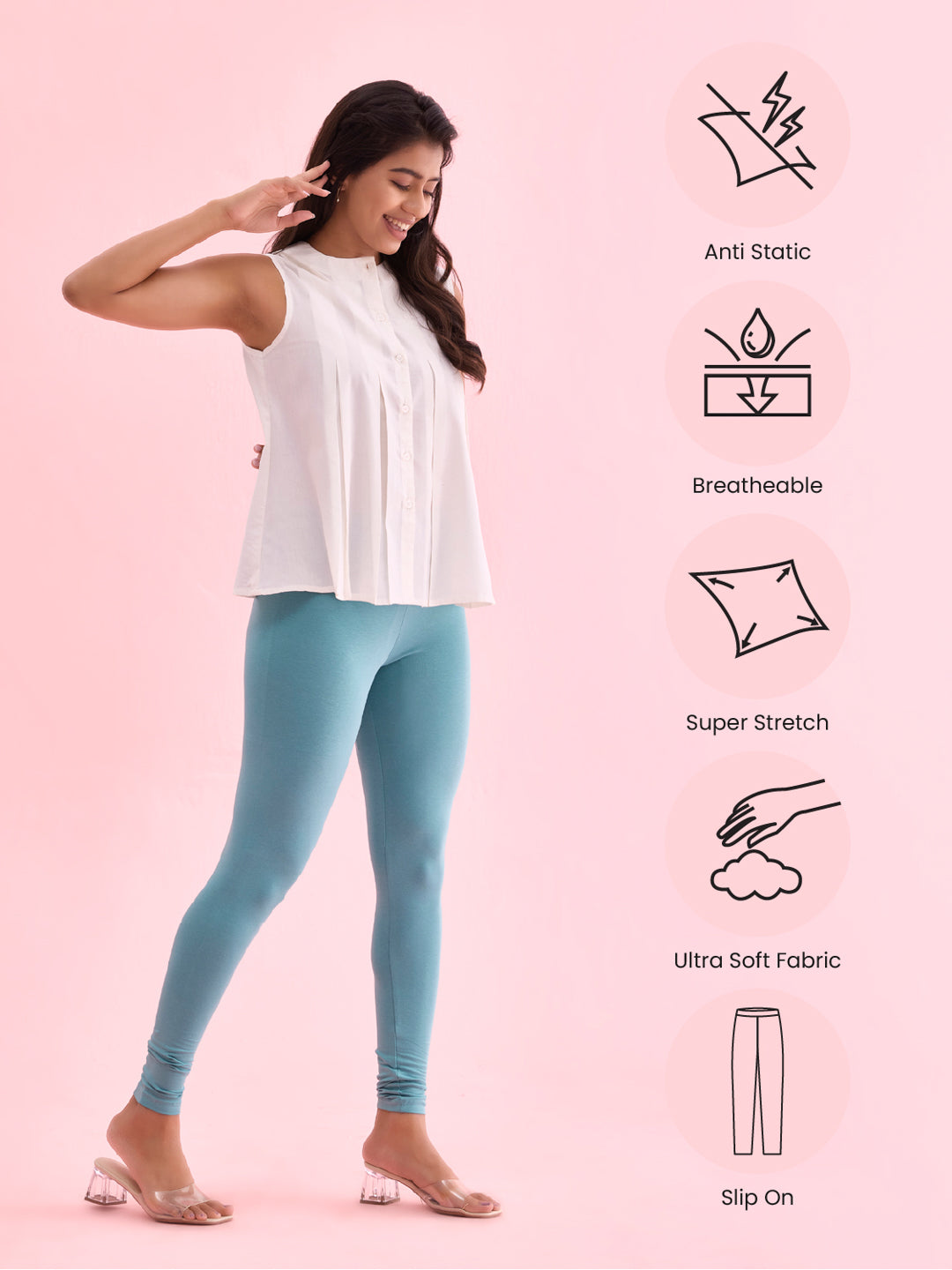 Complete any look, be it traditional or western with these Solid Light Mint Leggings. Made from cotton & elastane, it has a elasticised waistband & has a slim fit.