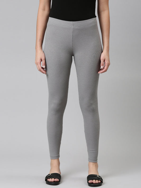 Ebony Grey Drop Needle Fabric Rib Leggings