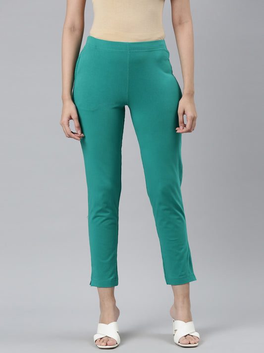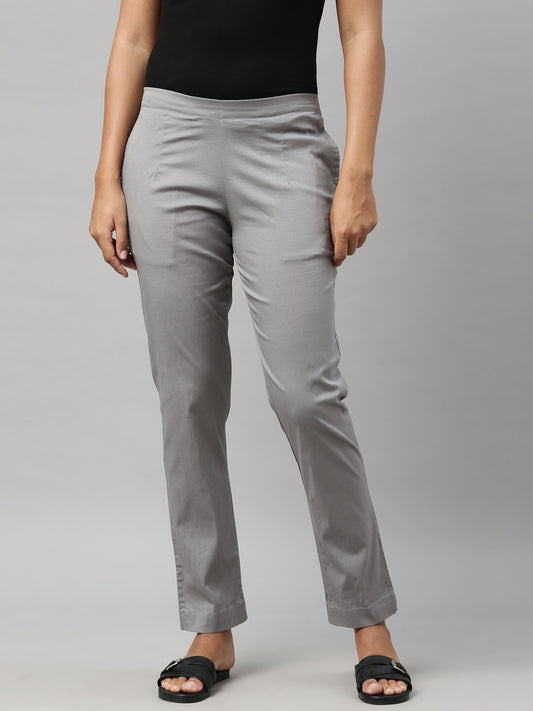 Silver Grey Cotton Stretch Ankle Length Leggings