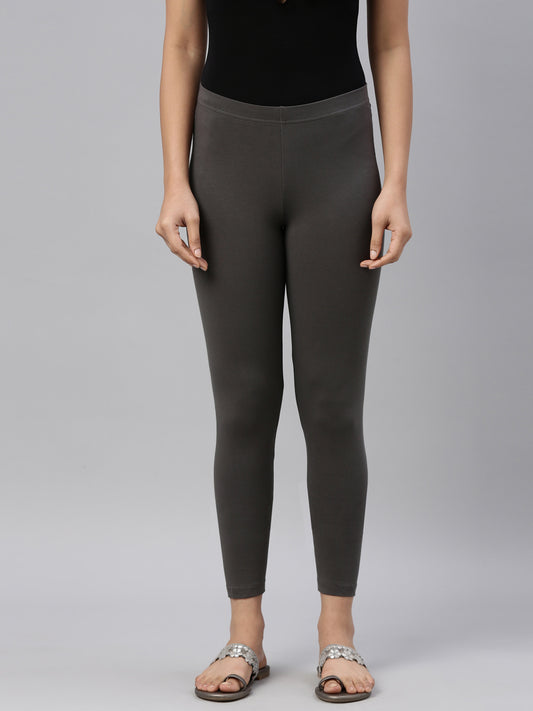 Ebony Grey Cotton Stretch Ankle Length Leggings