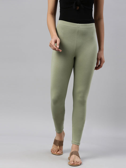 Dusty Green Cotton Stretch Ankle Length Leggings