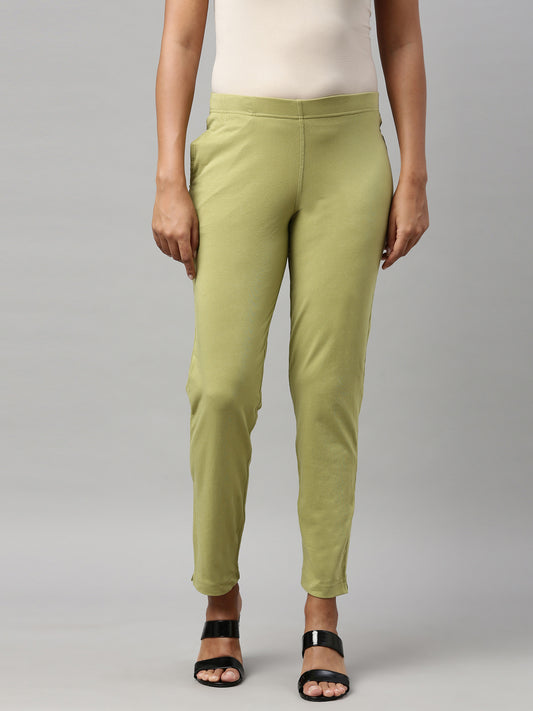 Green Mist Cotton Polyester Super Stretch Jeggings
