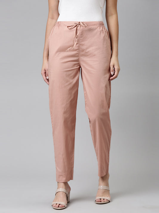 Dusty Pink Cotton Poly Stretch Cuffed Joggers