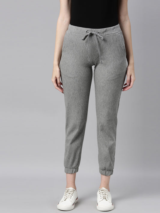 Grey Melanges Cotton Poly Stretch Cuffed Joggers