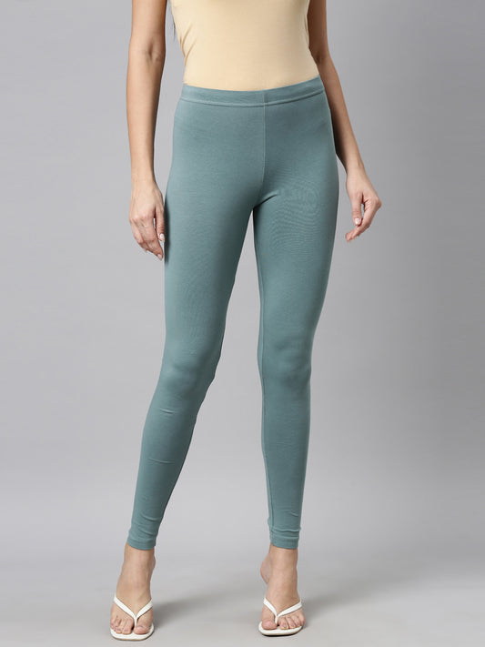 Ocean Green Cotton Stretch Ankle Length Leggings