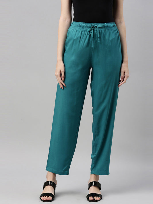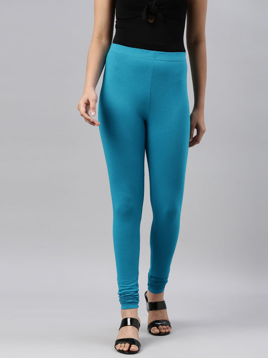 Peacock Blue Cotton Stretch Ankle Length Leggings