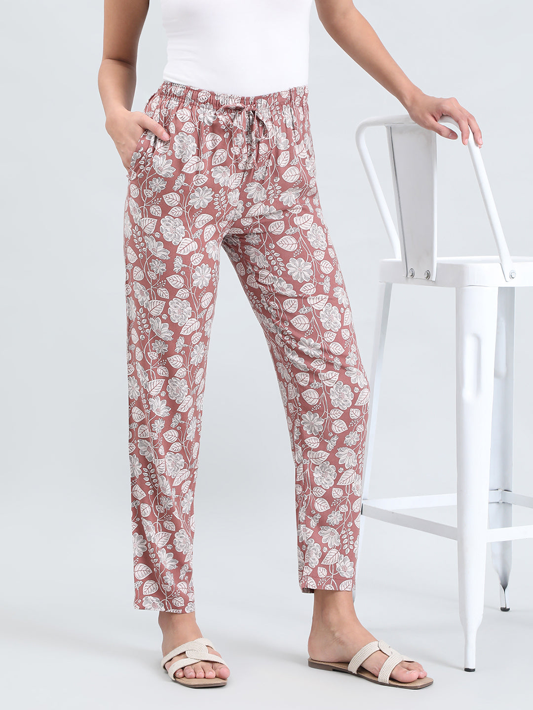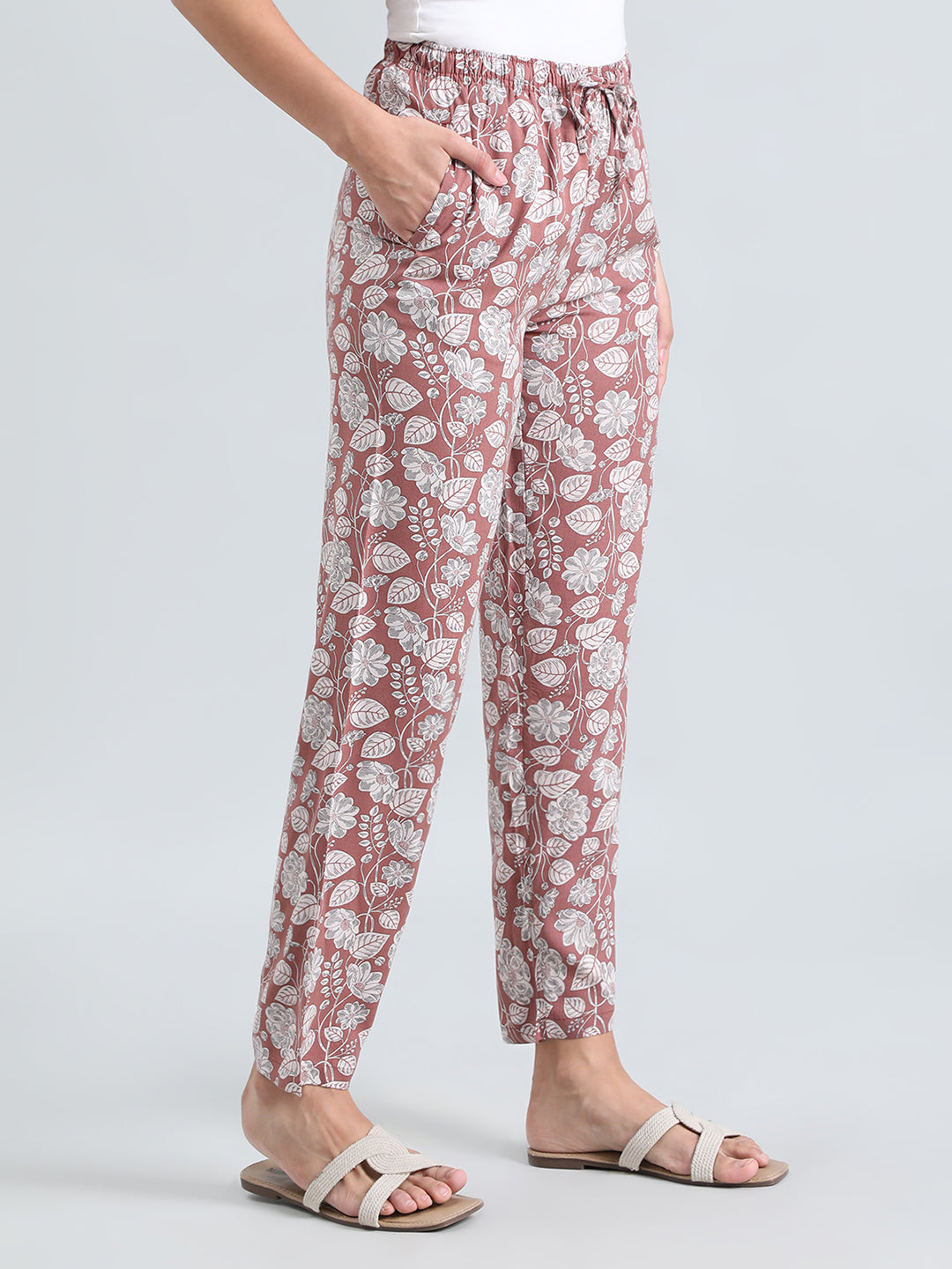 Brown Woven Viscose Printed Lounge Pants