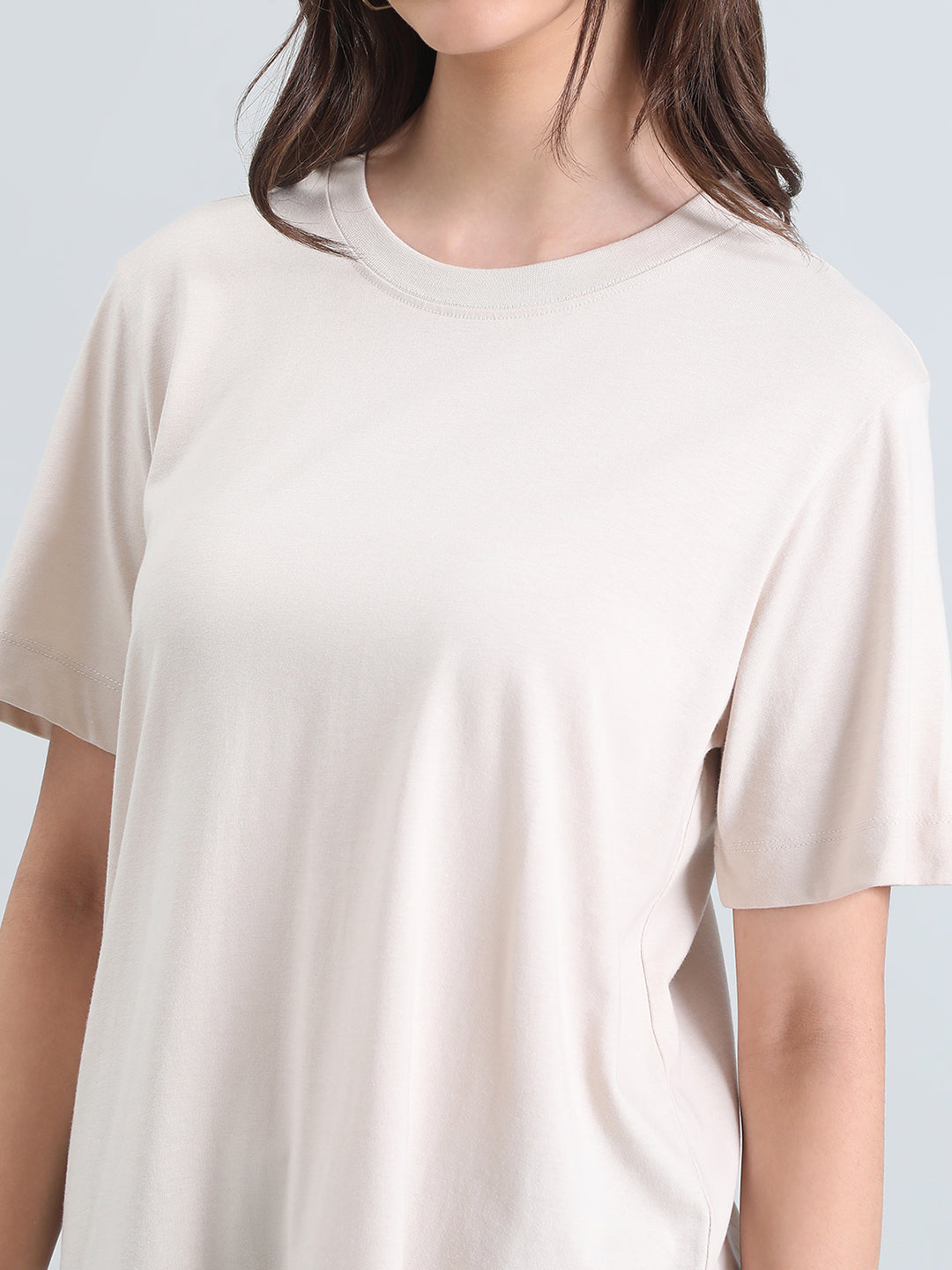 A modern longline T-shirt that keeps everyday styling simple and relaxed. Crafted from soft cotton fabric, it offers comfort while the longer length adds a modern touch. The cotton jersey fabric made with 100% cotton keeps it breathable and comfortable through the day. Pair it with Go Colors leggings, joggers or casual pants to create a laid back outfit that feels effortless and comfortable.