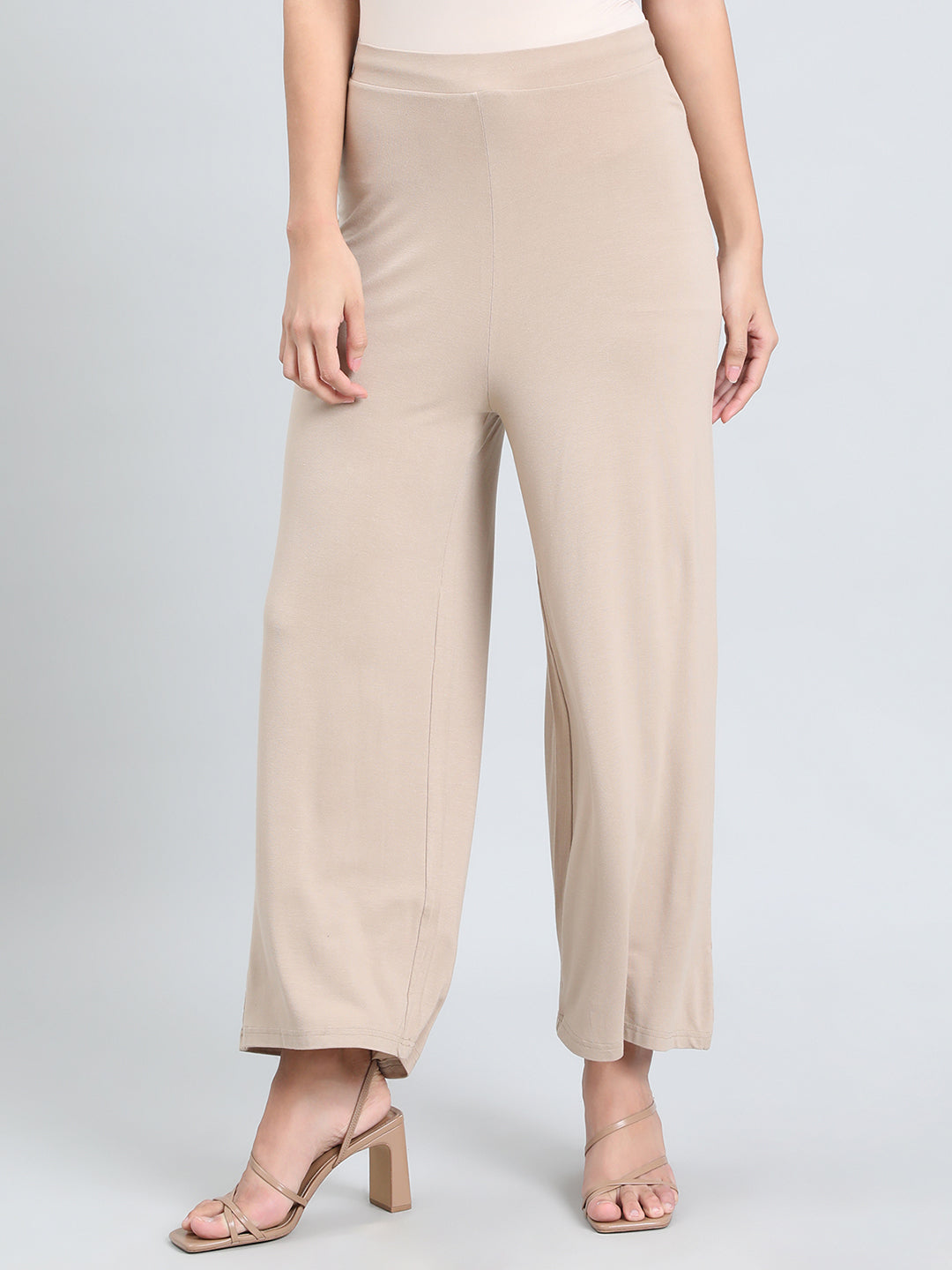 Spruce up a look in the Solid Dark Beige Knit Palazzo Pants. Made from viscose & elastane, it has a comfor stretch, full length & has solid, light & fluid drape