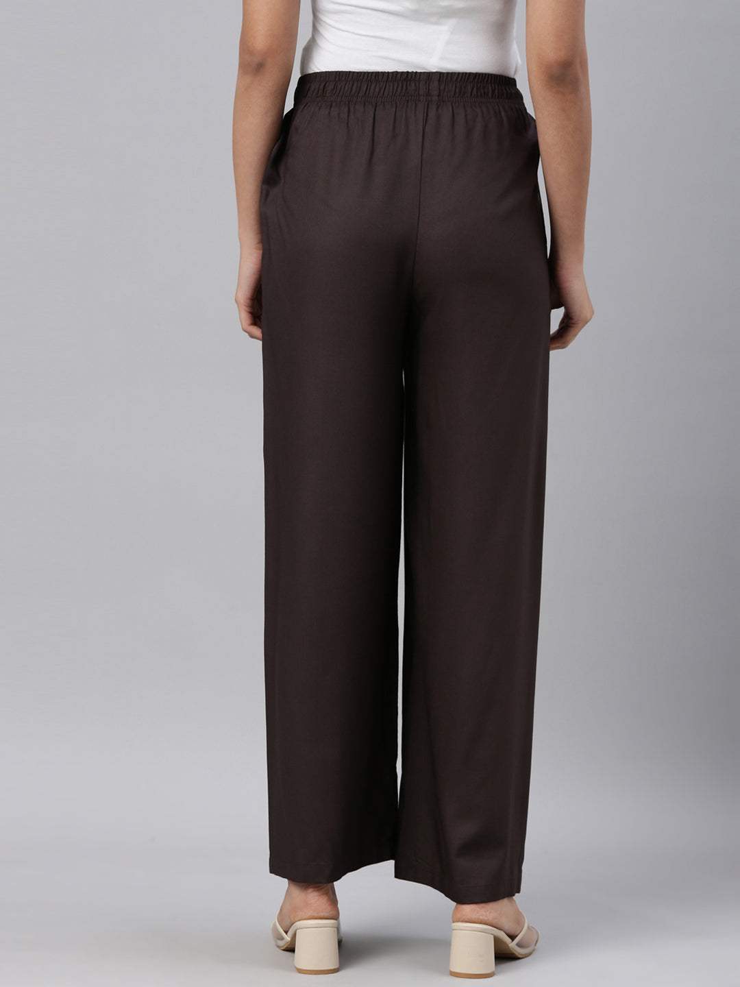 Dark Brown Woven Viscose Basic Palazzo