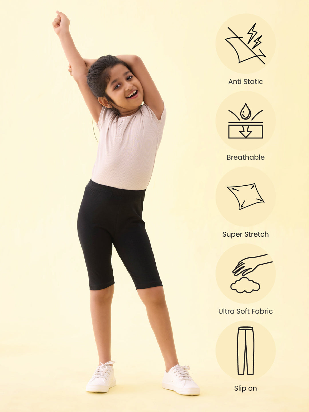 Playtime looks are effortless with Solid Black Cycling Shorts. Made from cotton, it has a elasticised waistband & is of knee length.