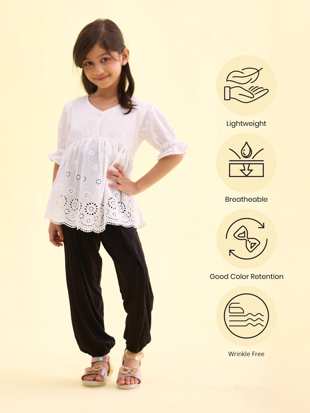 Look comfortable yet stylish with the Solid Black Harem Pants. Made from viscose & elastane, it has a elastcised waistband & a fluid drape.