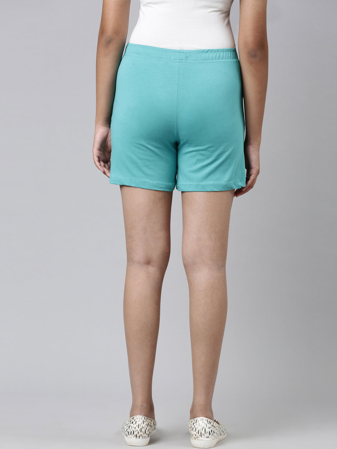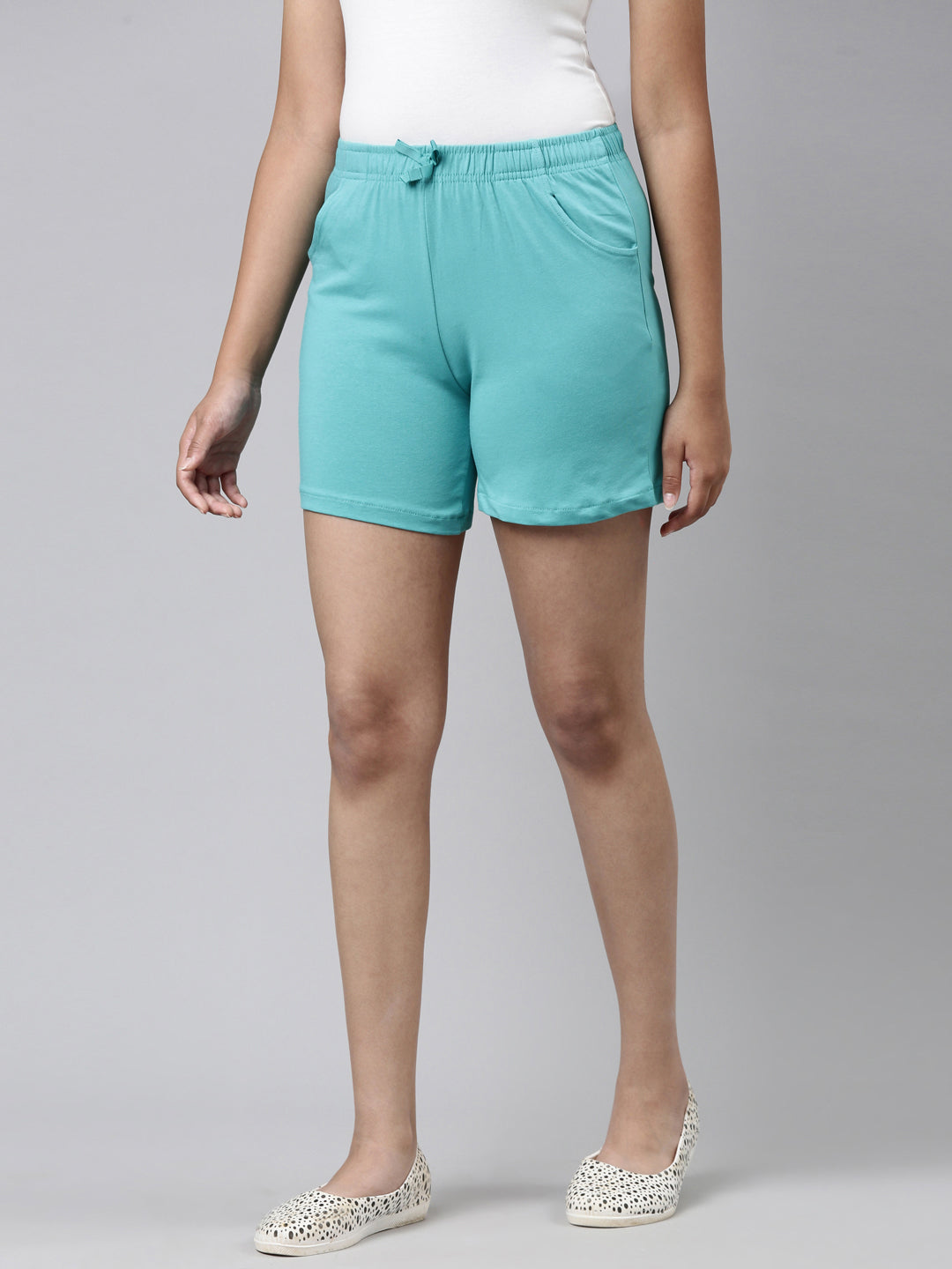Look relaxed yet chic with the Solid Dark Mint Knit Shorts. Made from cotton, it has a elasticised waistband with drawstring closure, slant pockets & relaxed fit.