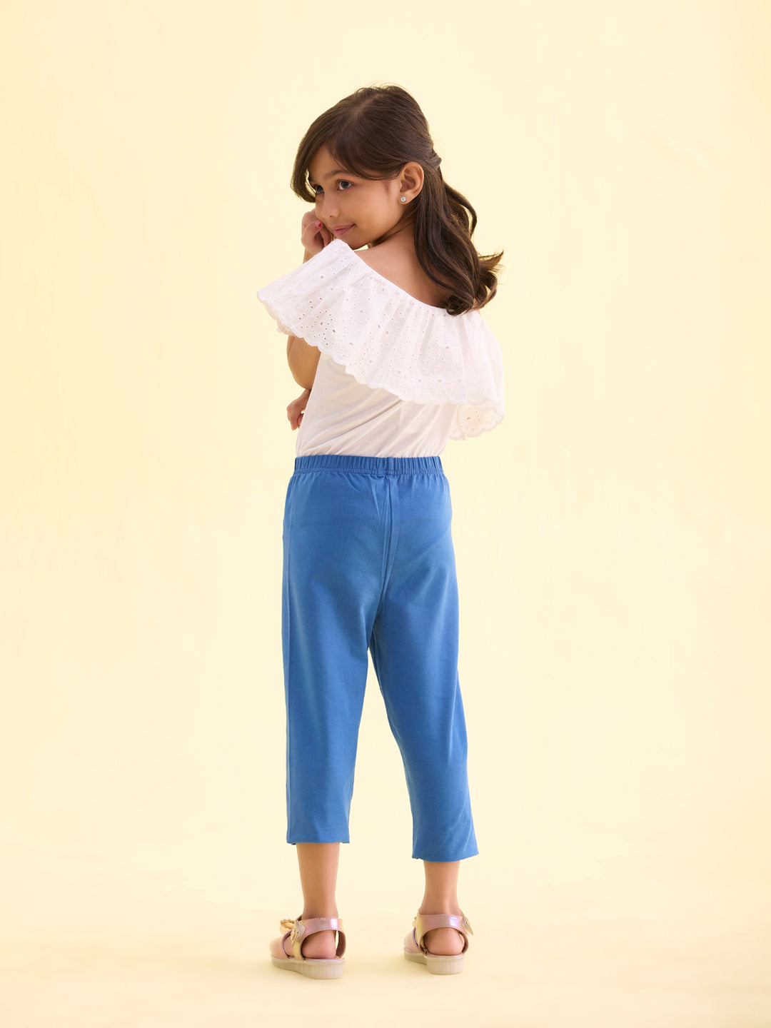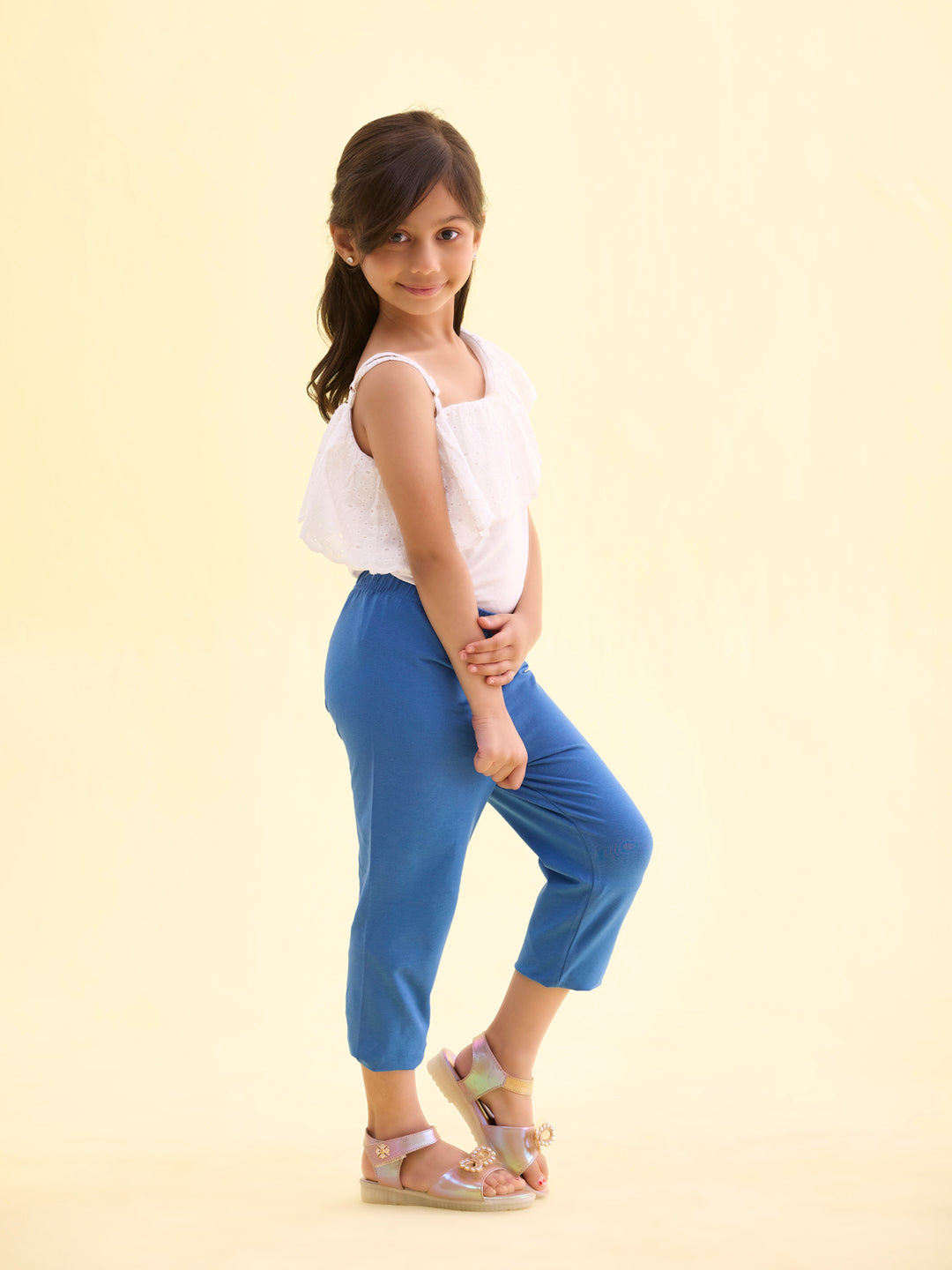 Be it any situation, the Solid Light Jean Blue Three- Fourth Leggings are perfect. Made from, it has a elasticised waistband, slim fit & is of calf length.