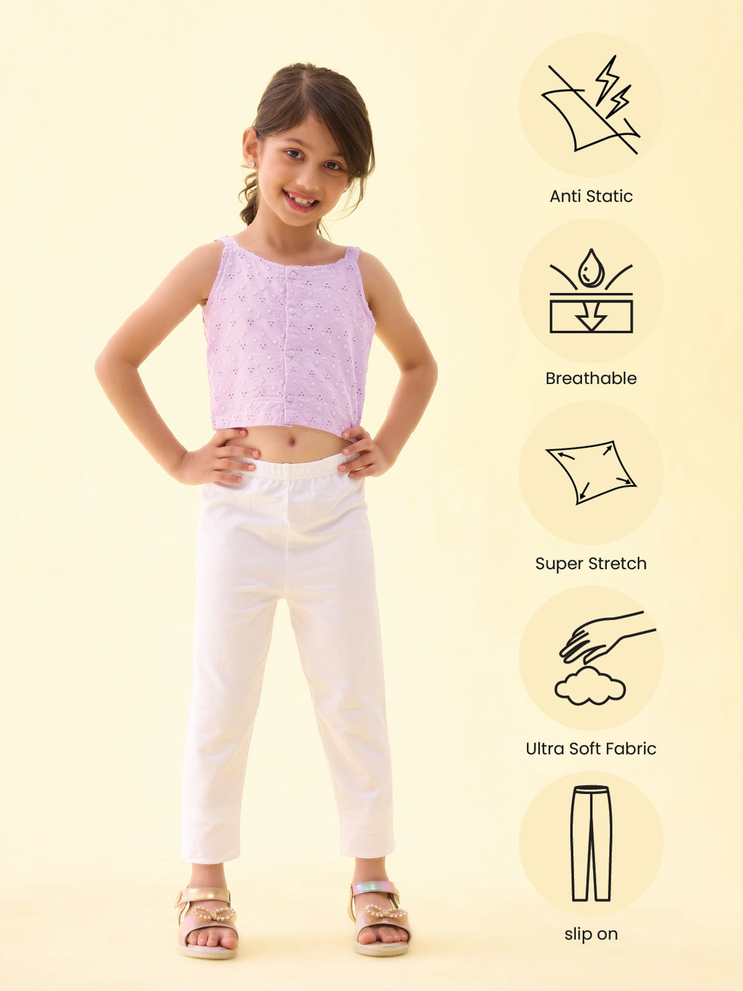 Be it any situation, the Solid White Three- Fourth Leggings are perfect. Made from, it has a elasticised waistband, slim fit & is of calf length.