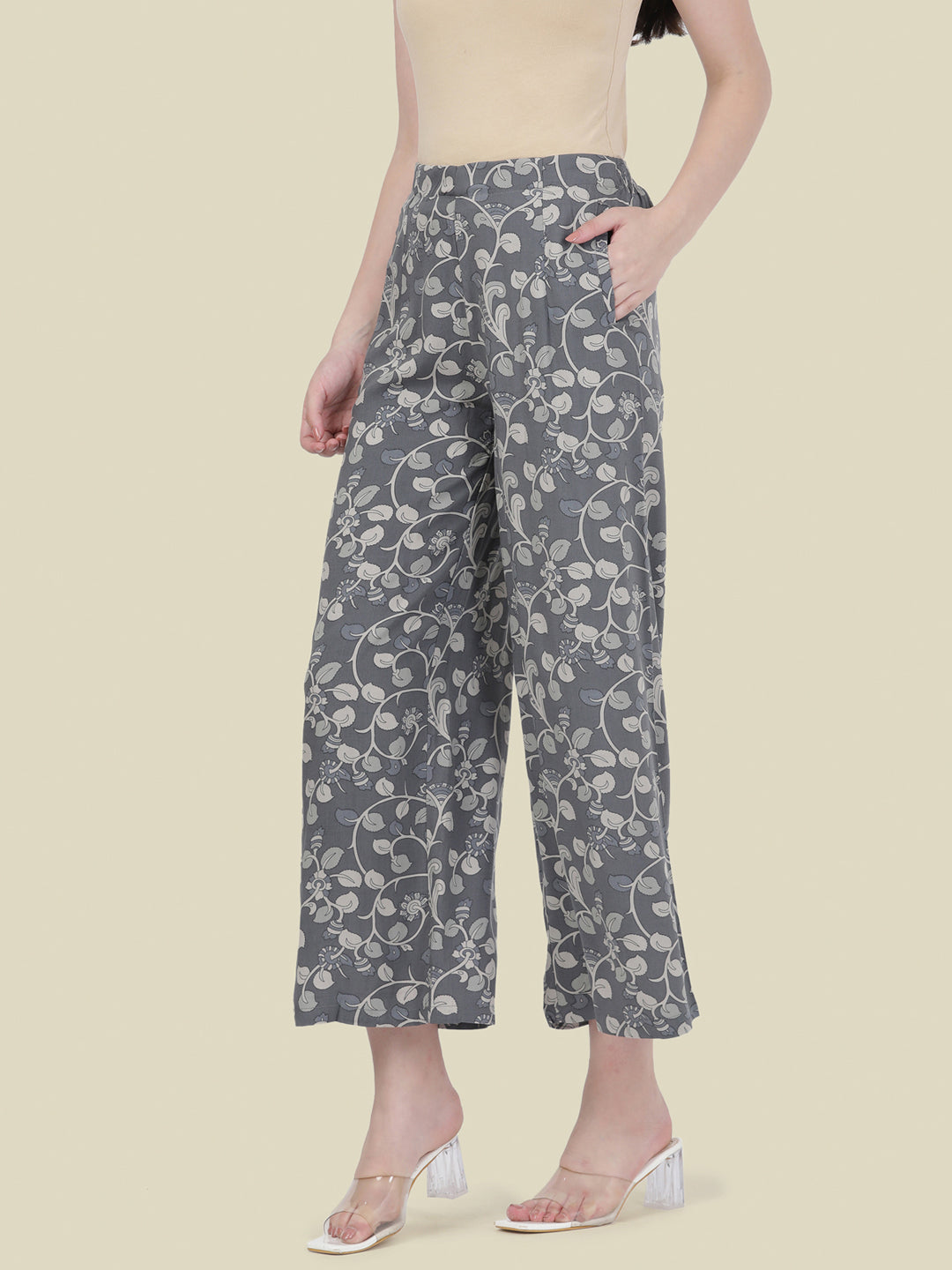 Grey Woven Viscose Printed Palazzo