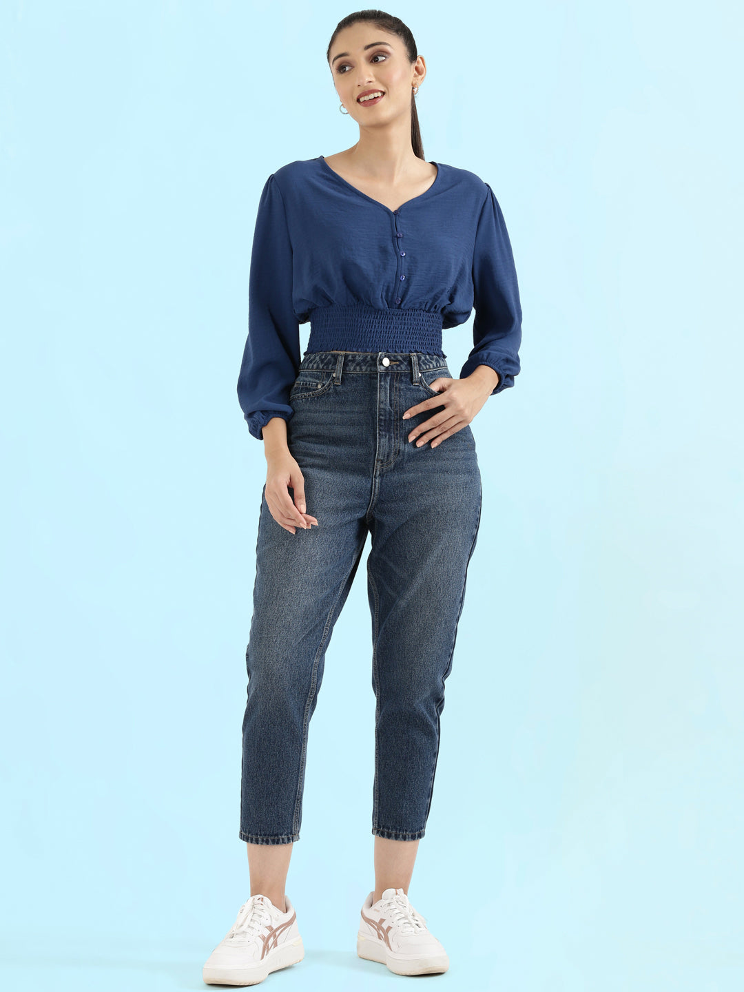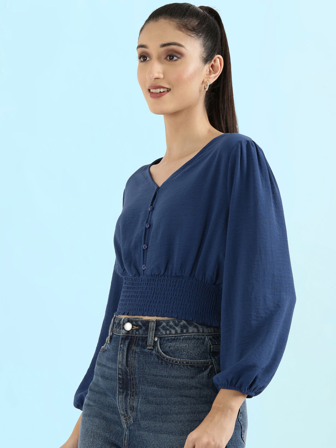 A modern crop top designed with a flattering V neckline and textured fabric. The structured silhouette keeps it chic while the comfortable fit makes it easy for everyday wear. Made from a textured stretch fabric composed of 94% polyester and 6% elastane that maintains shape while allowing movement. Pair it with high waist pants or skirts for a confident outfit.