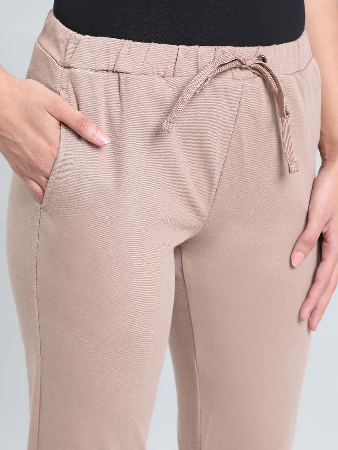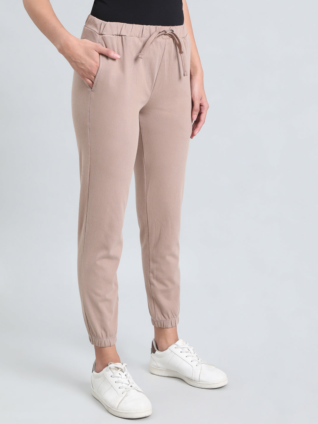 From running errands to casual chilling with friends, Solid Light Brown Joggers are your perfect pair of bottomwear. Made from cotton, polyester & elastane, it has elasticised waistband with drawstring closure, slant