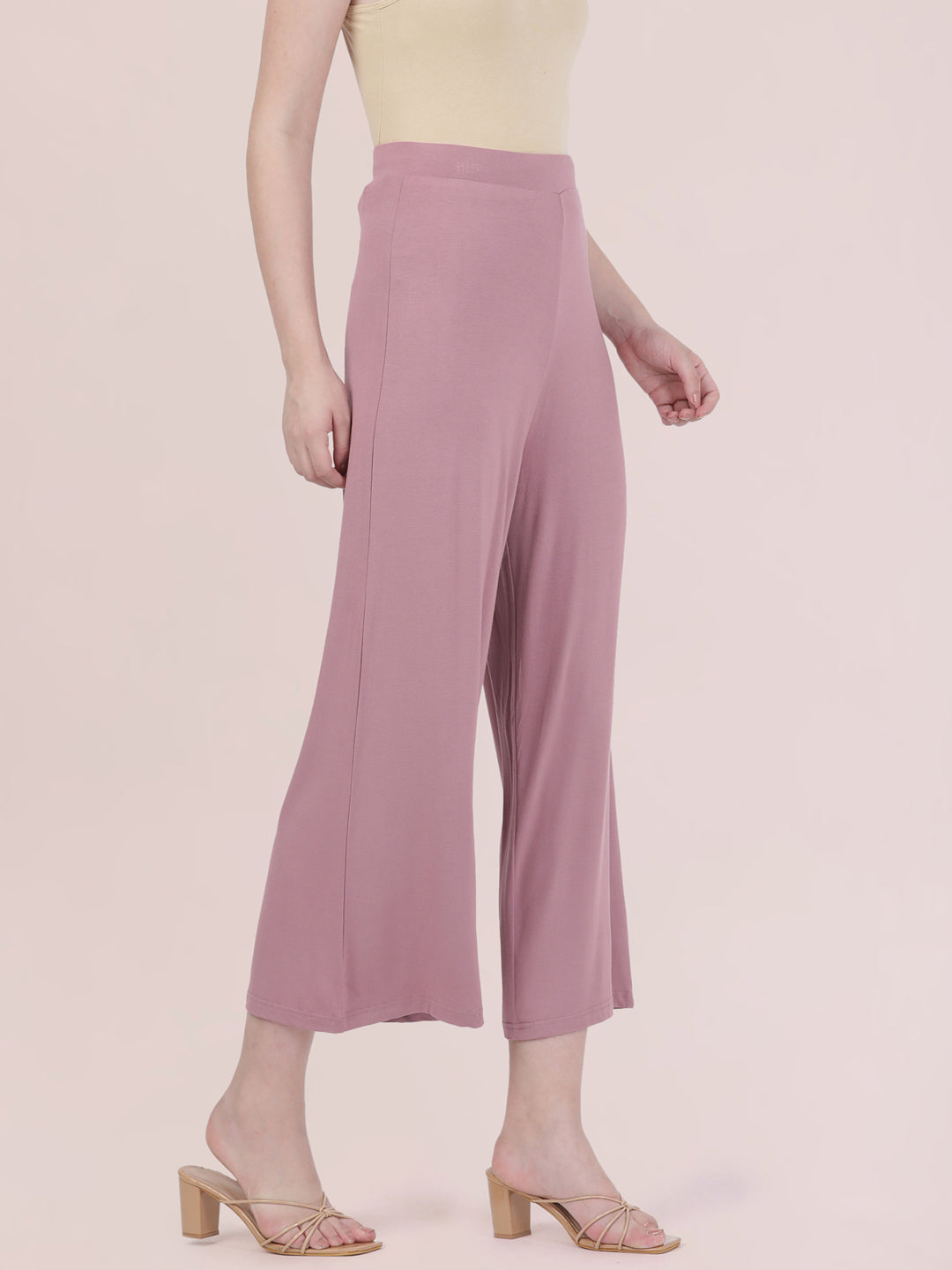Spruce up a look in the Solid Light Wine Knit Palazzo Pants. Made from viscose & elastane, it has a comfort stretch, full length & has solid, light & fluid drape