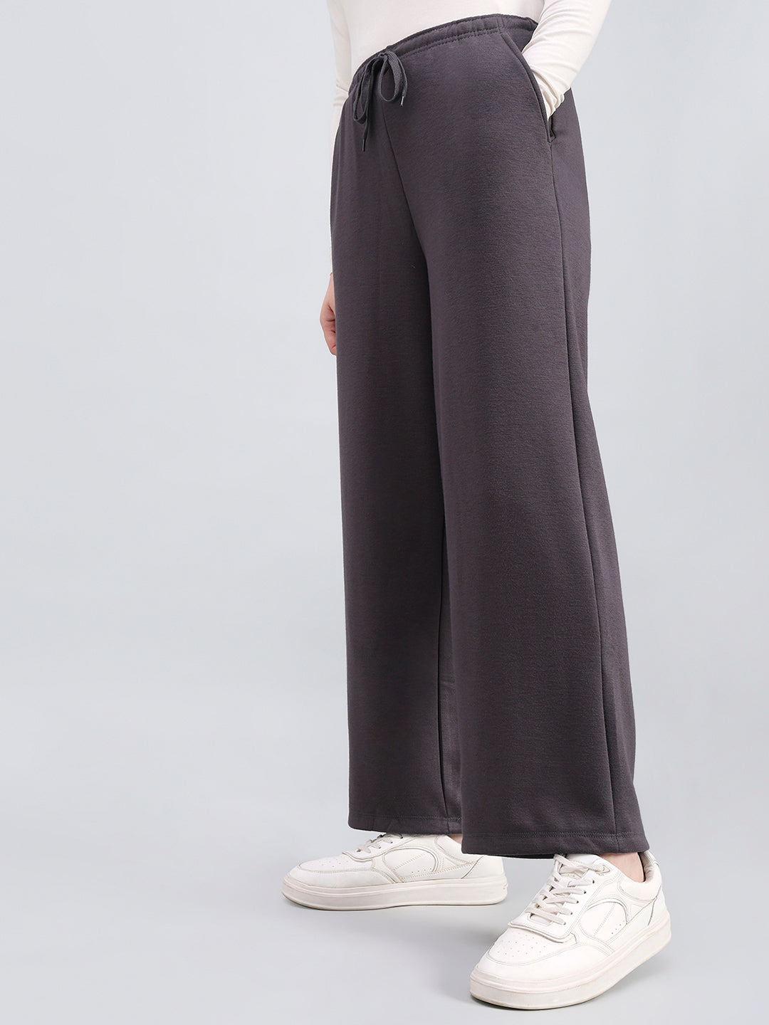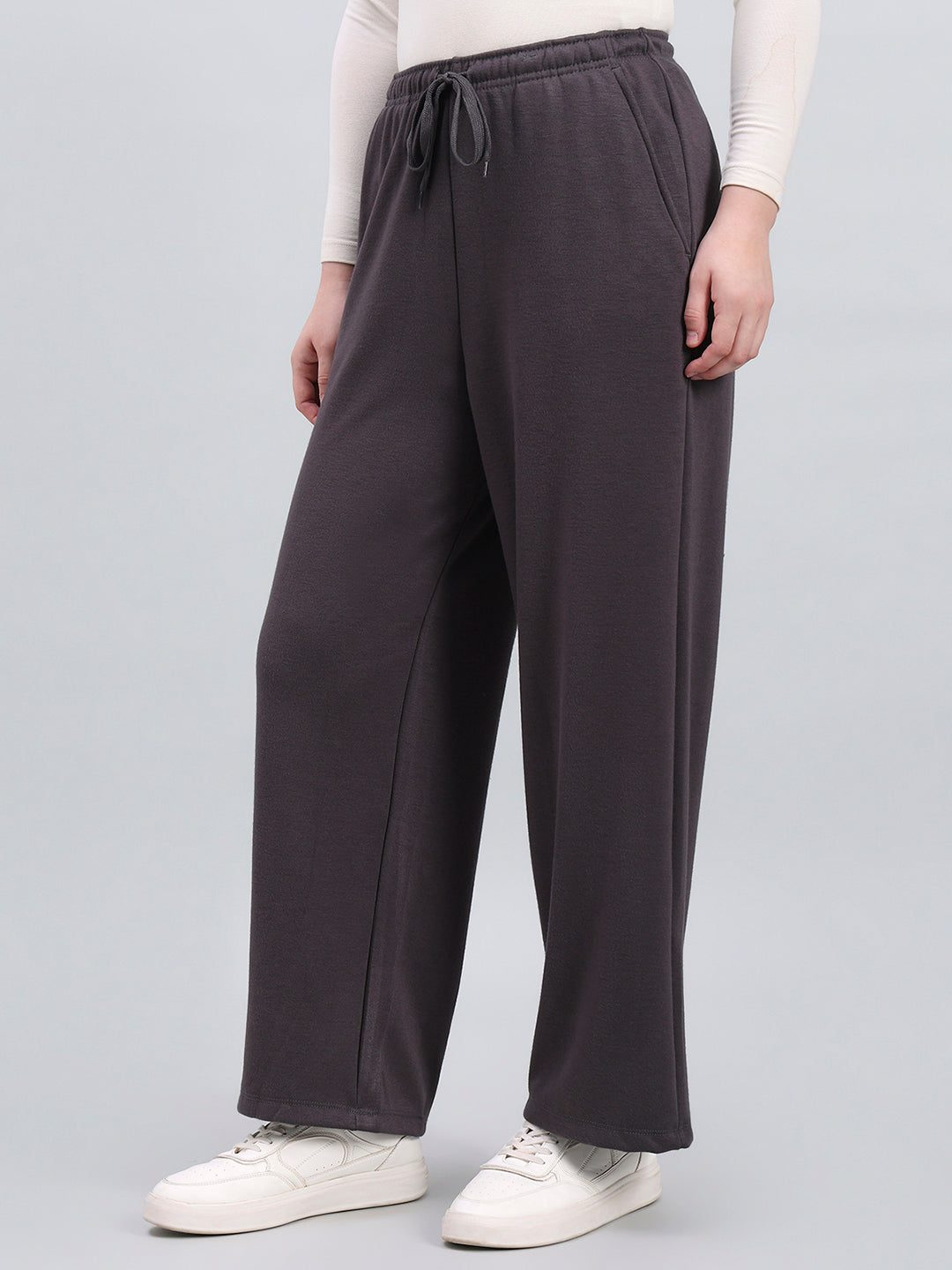 Stay Stylish And Cozy With Our Fleece Wide Pants, Crafted From A Soft Cotton-Polyester-Pu Blend. Featuring A Relaxed Fit, Elastic Waistband, Side Pockets, And Full-Length Solid Finish, These Pants Offer Warmth, Comfort, And Effortless Style Perfect For Casual Or Lounge Wear