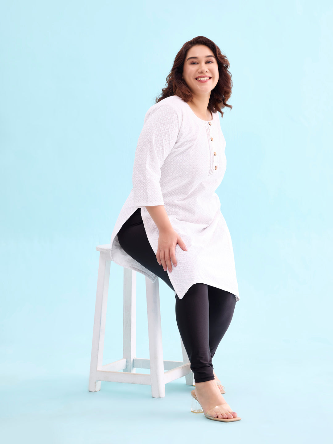Go chic with a pair of Black Solid Shimmer Churidar Leggings. Made from high quality Nylon & Elastane, it has a elasticised waistband & gathers at the hemline.