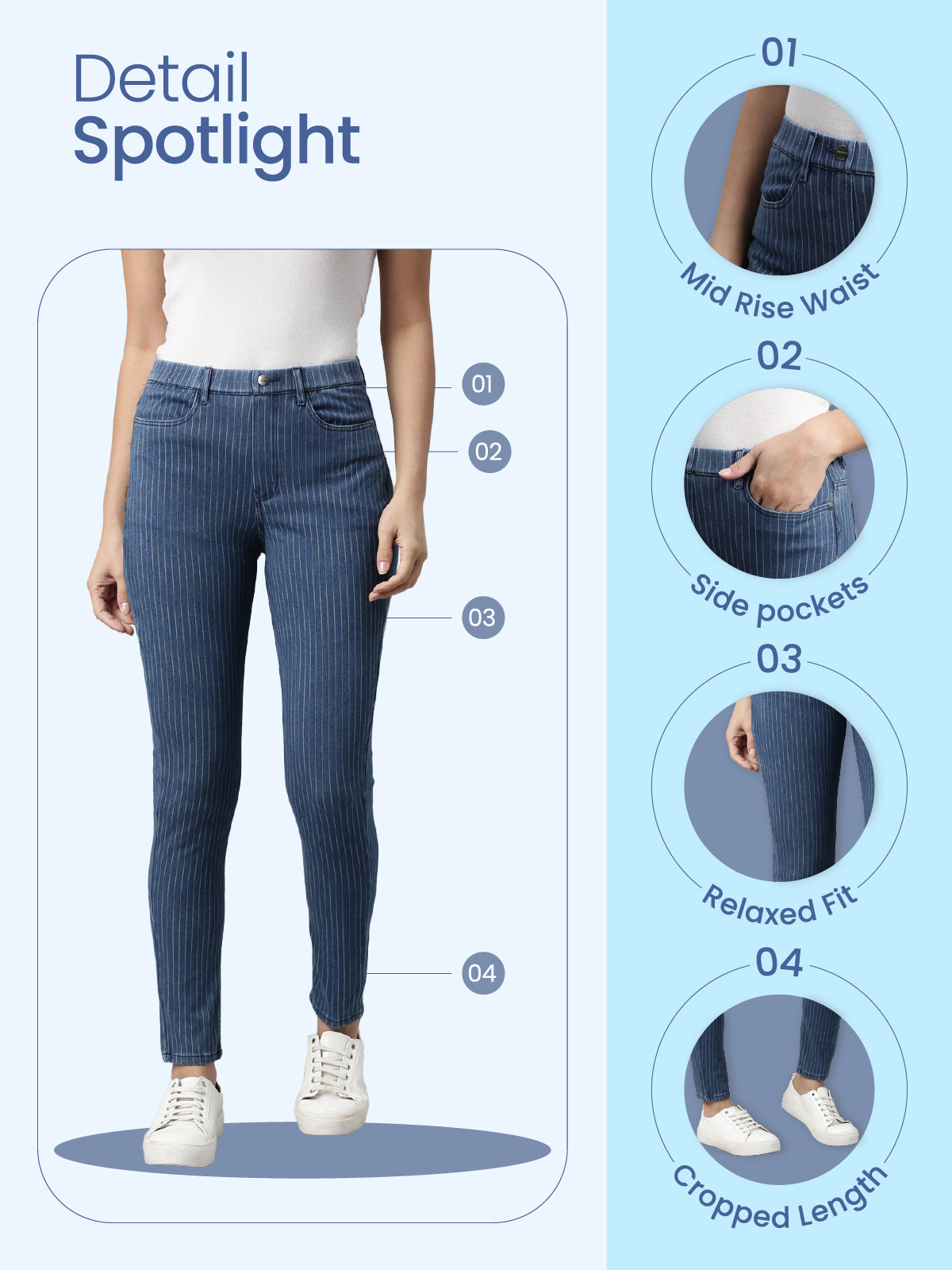 Blue Cotton Poly Stretch Stripes Denim Jeggings