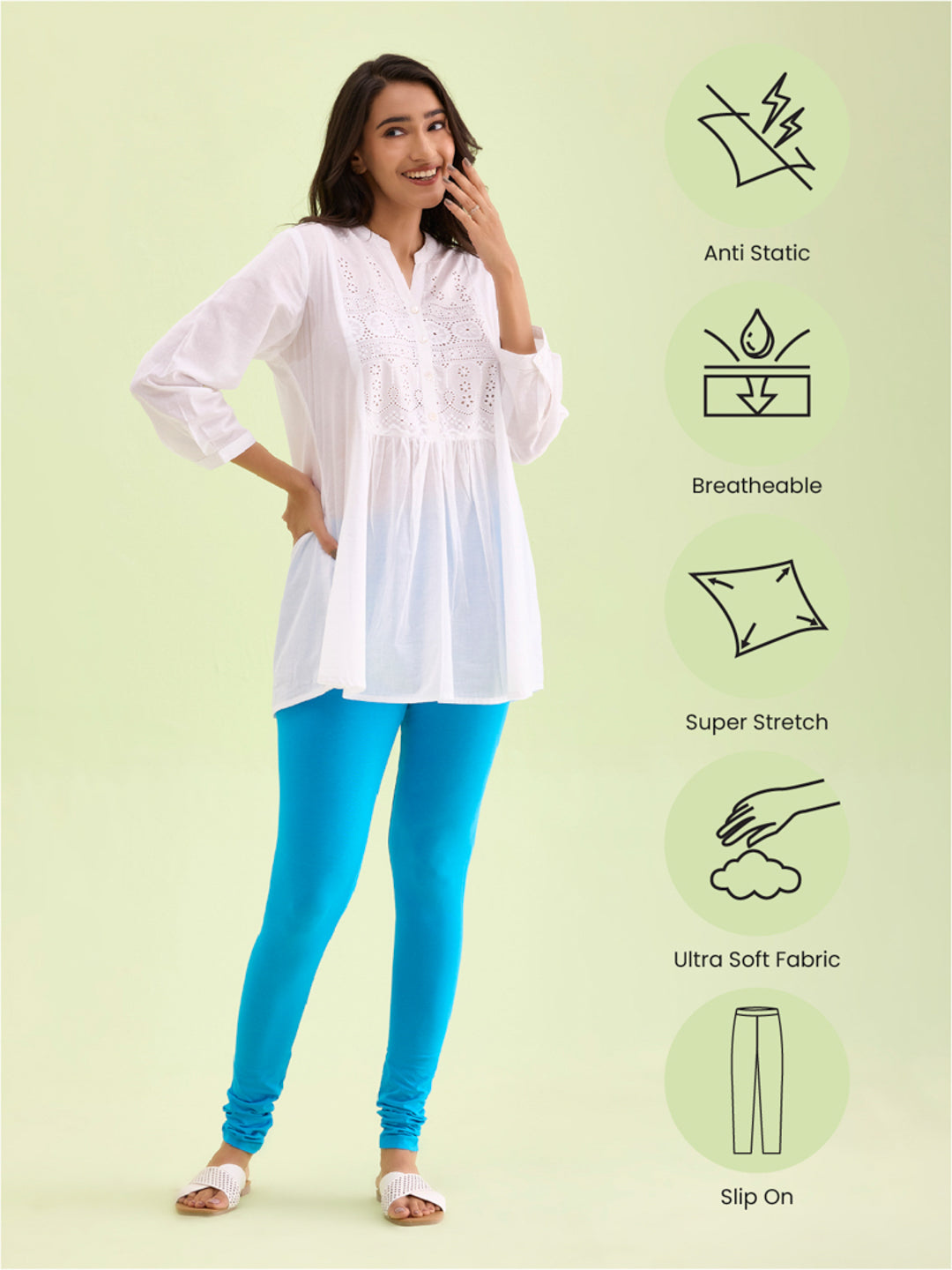 Go chic with a pair of Firozee Solid Churidar Leggings. Made from high quality cotton, it has a elasticised waistband & gathers at the hemline.