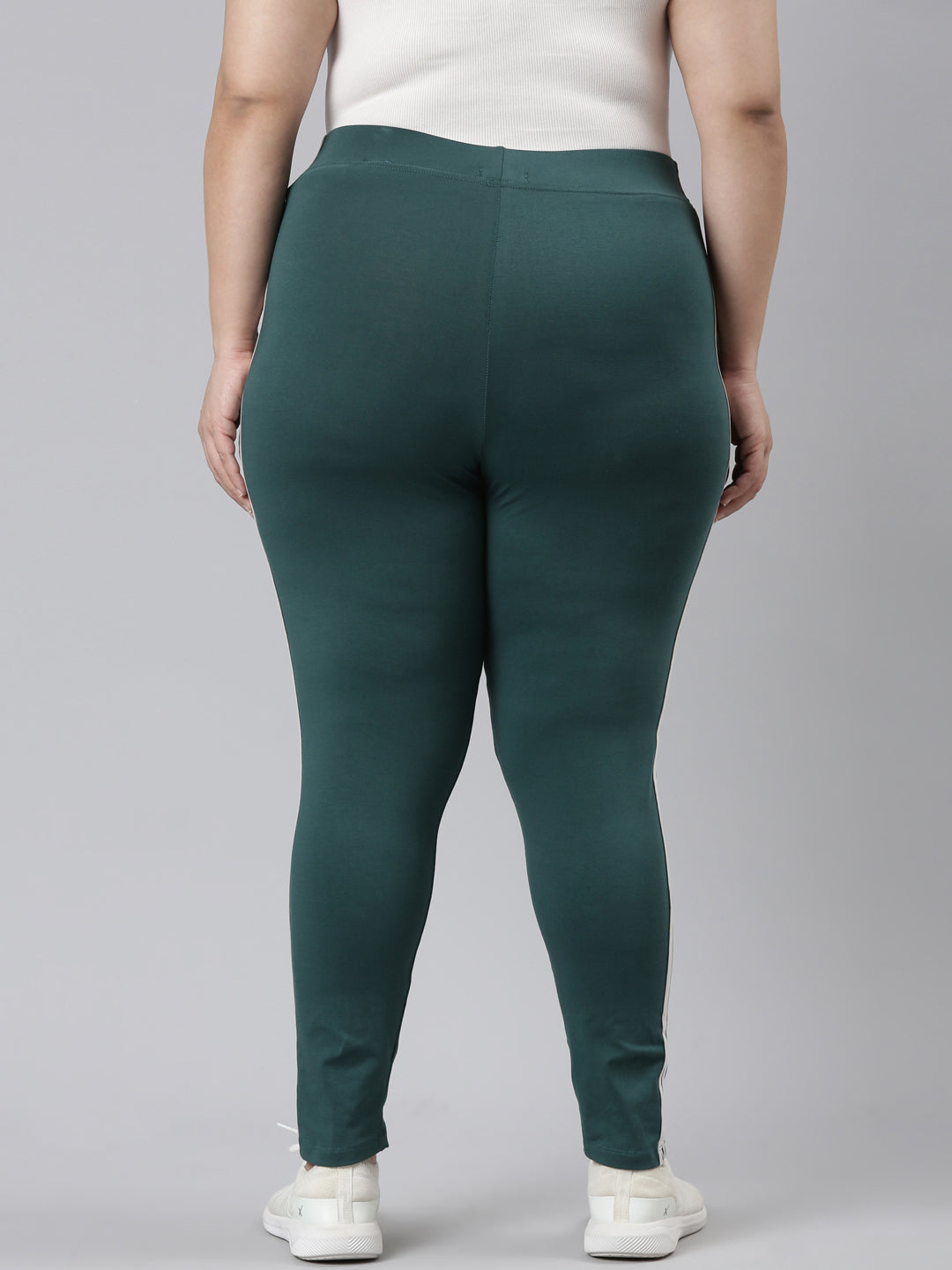 Bringing your A-game to any fitness regime with our comfortable Green Solid Side Stripe Active Leggings. Made from cotton stretch fabric, it has a elasticised waistband & a contrast side striped panel for a sporty look.