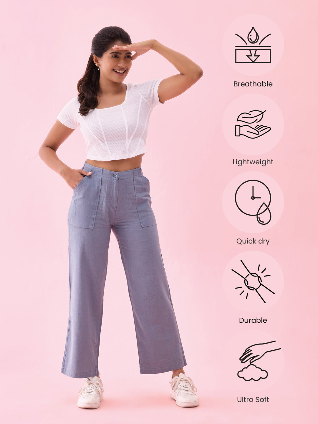 Be it a casual day out or a meeting at work, the easy breezy Jeans Blue Linen Cargo Pants are your best bet. Made from breathable Linen, it has a drawstring closure, patch pockets & a relaxed fit.