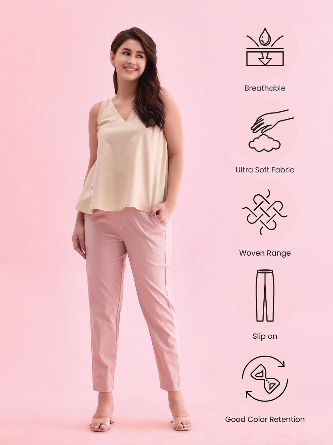 Go from ethnic to Formal look in a jiffy with the Solid Light Pink Chinos Trousers Made from Cotton & Spandex it has a elasticised waistband, a slant pocket.
