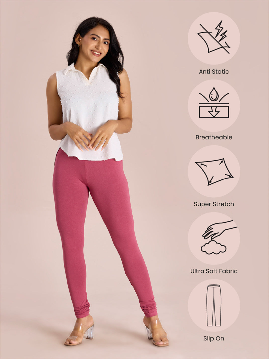 Go chic with a pair of Light Wine Solid Churidar Leggings. Made from high quality cotton, it has a elasticised waistband & gathers at the hemline.