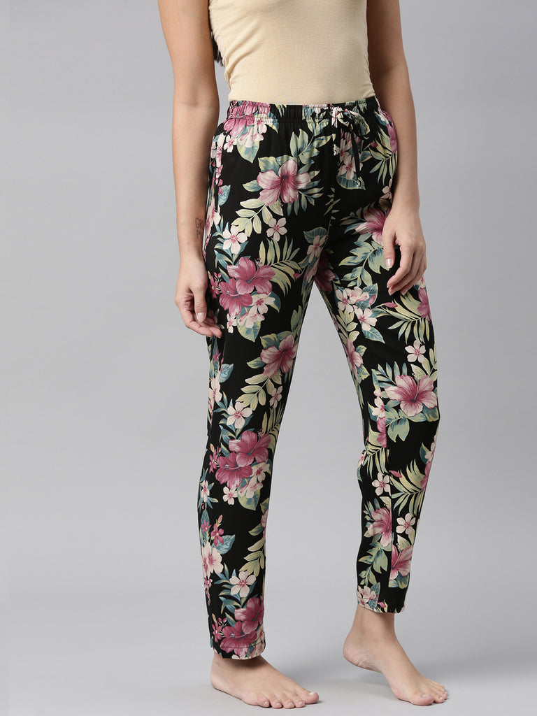 Black Woven Viscose Printed Lounge Pants