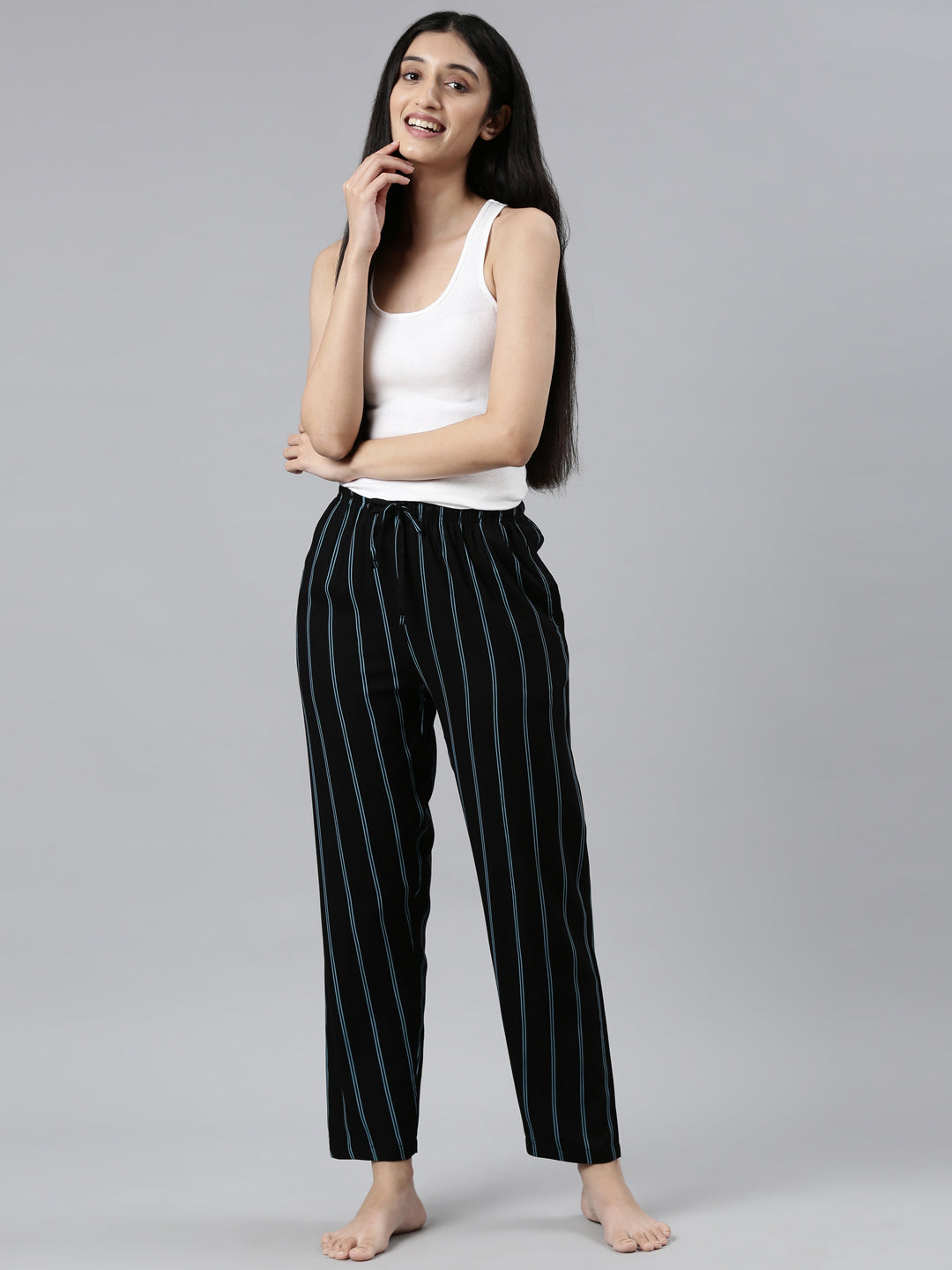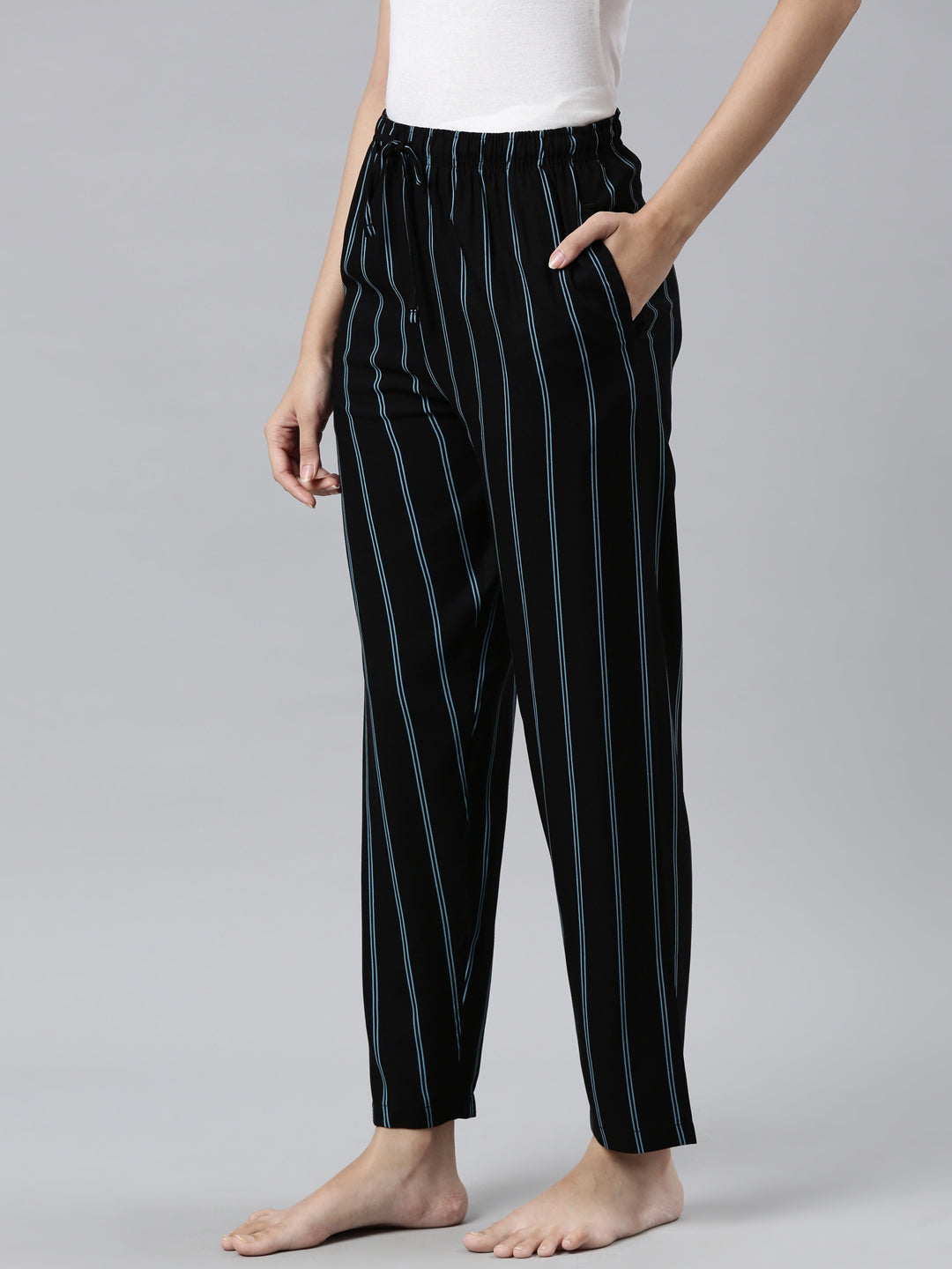 Viscose Lounge Pants : HP01 | Black Blue Stripes