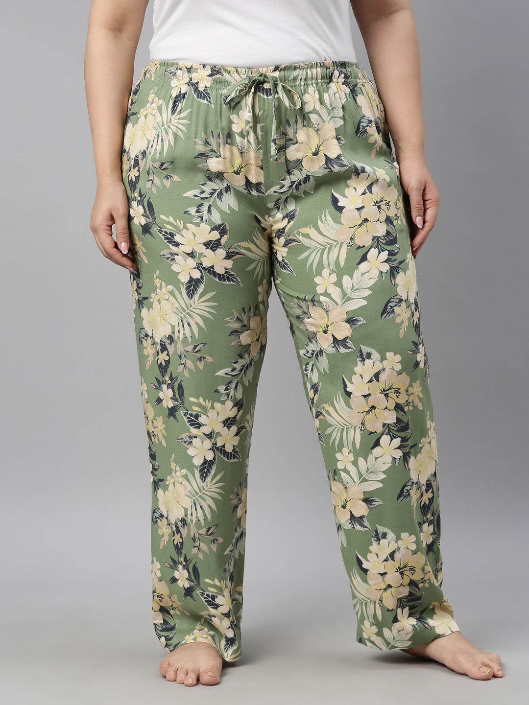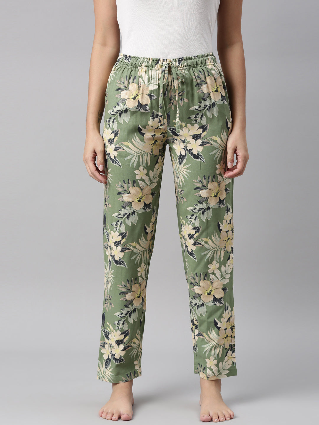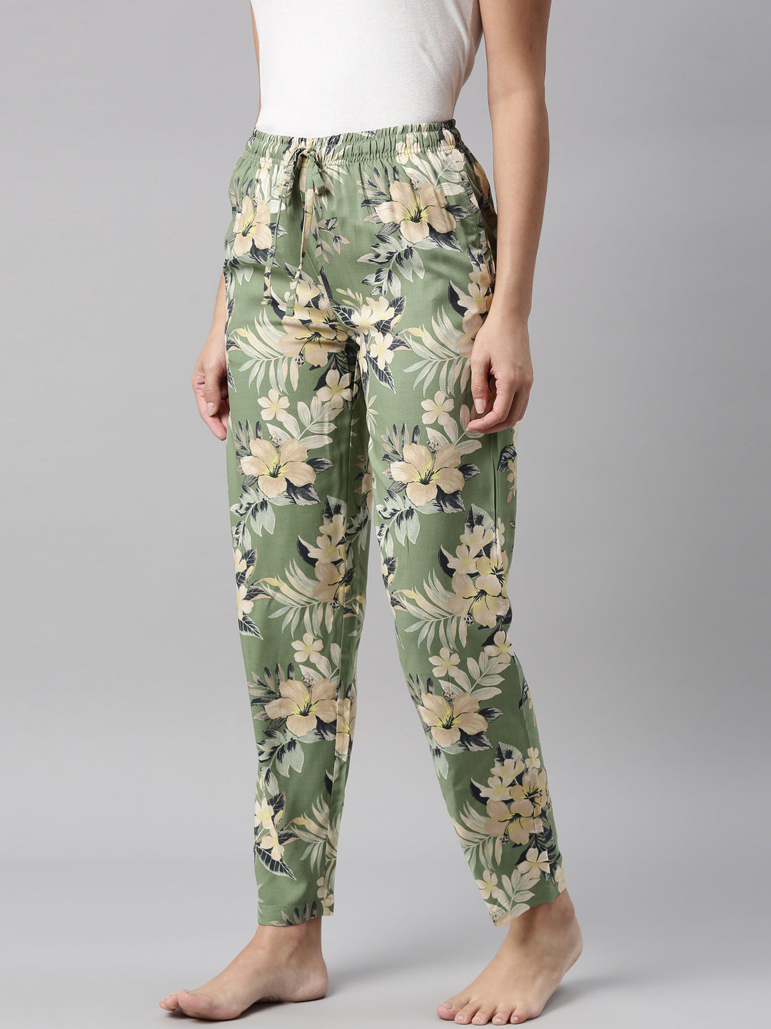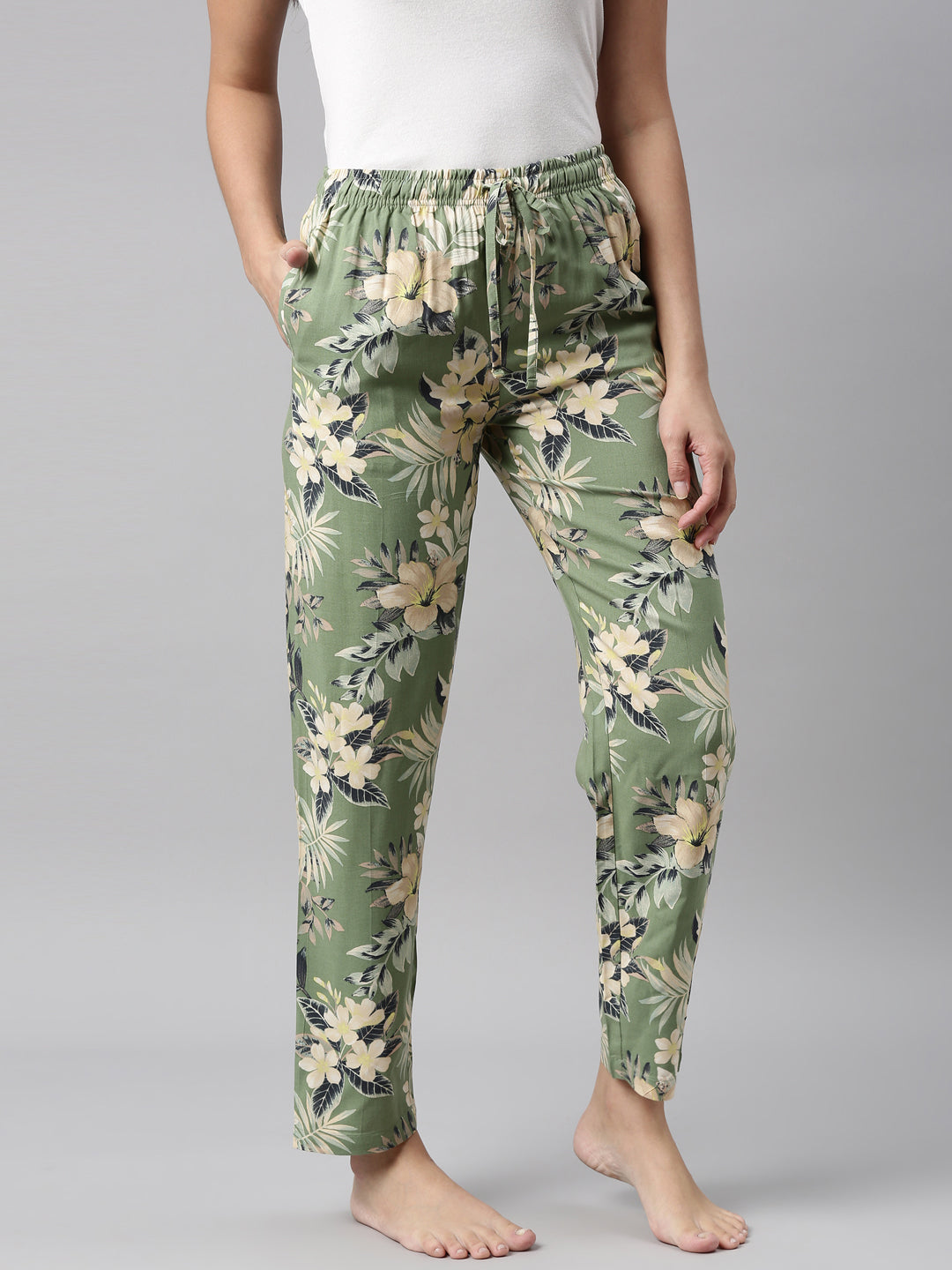 Green Woven Viscose Printed Lounge Pants