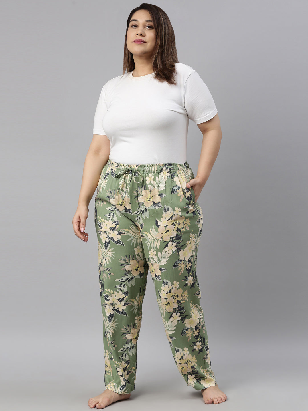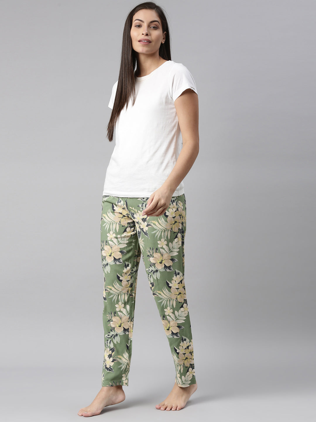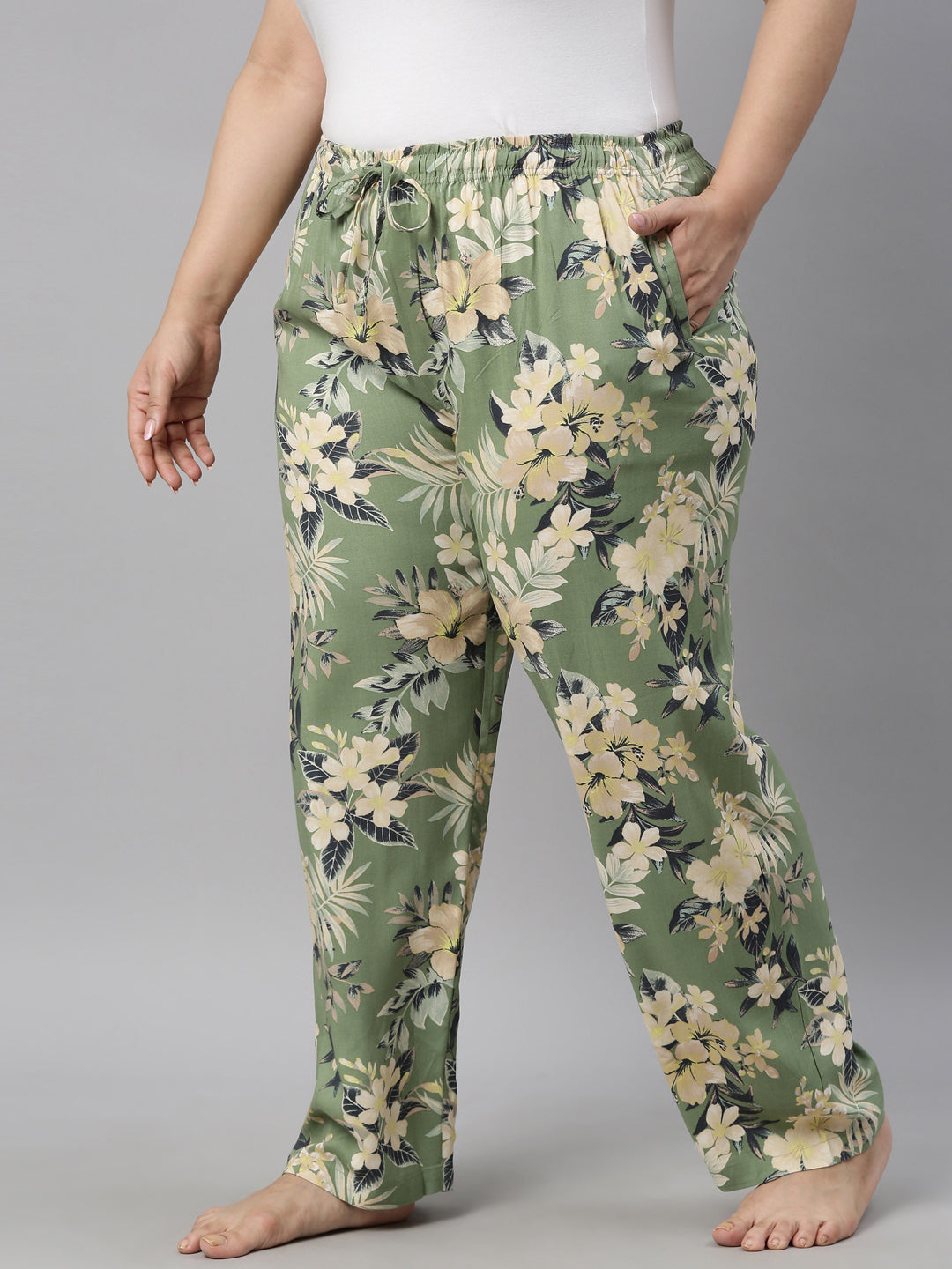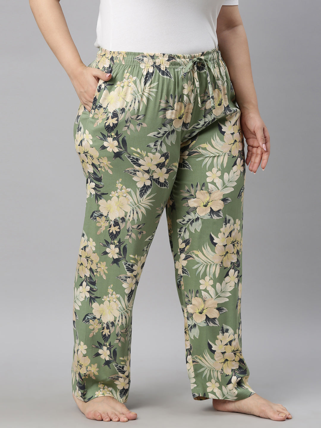 Green Woven Viscose Printed Lounge Pants