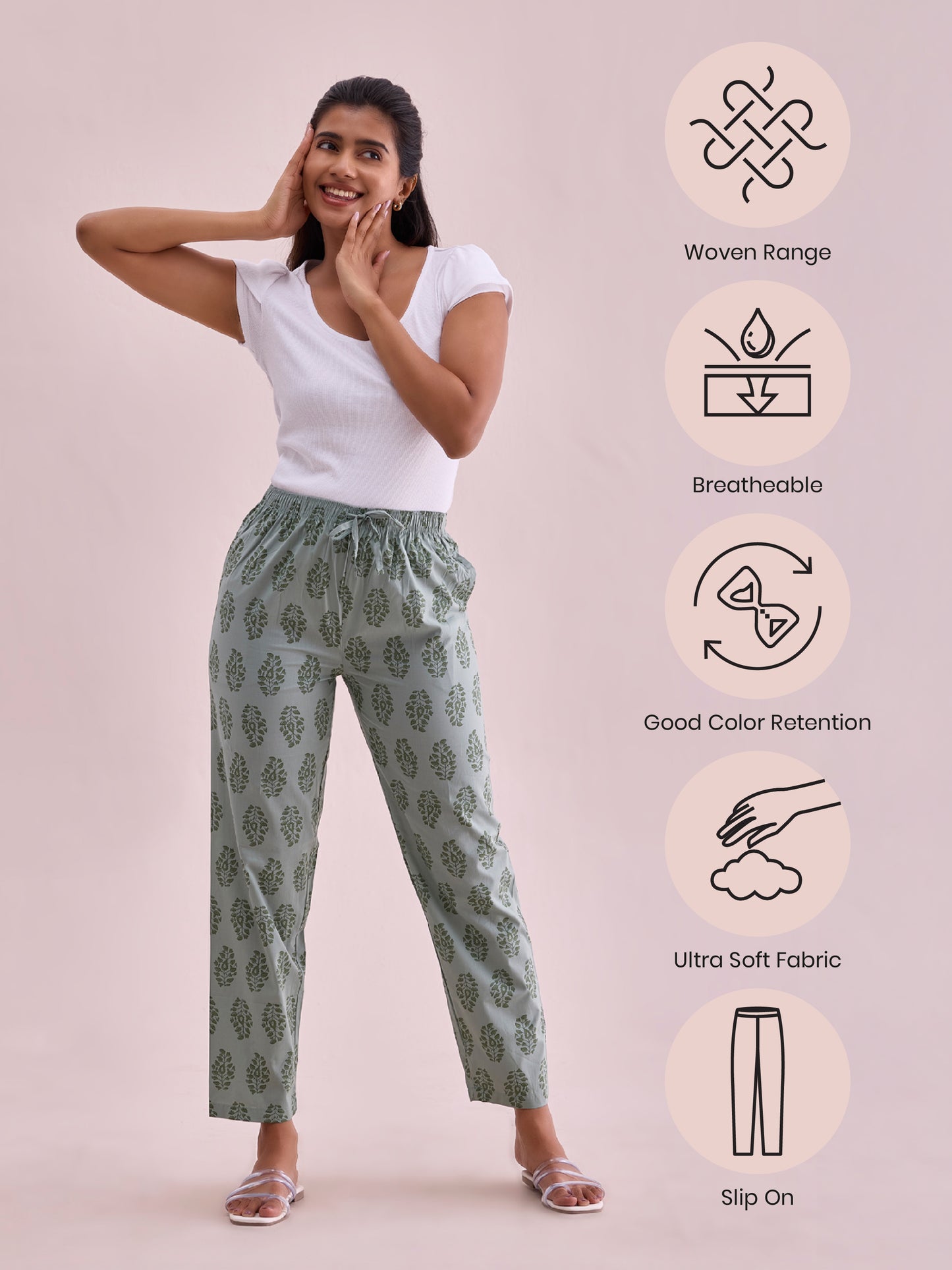 Look chic while lounging in our Printed Cotton Lounge Pants. Made from cotton, it has a elasticised waistband with drawstring closure, slant pockets & is extremely light weight.