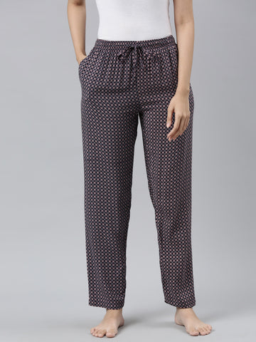 Navy Woven Viscose Printed Lounge Pants