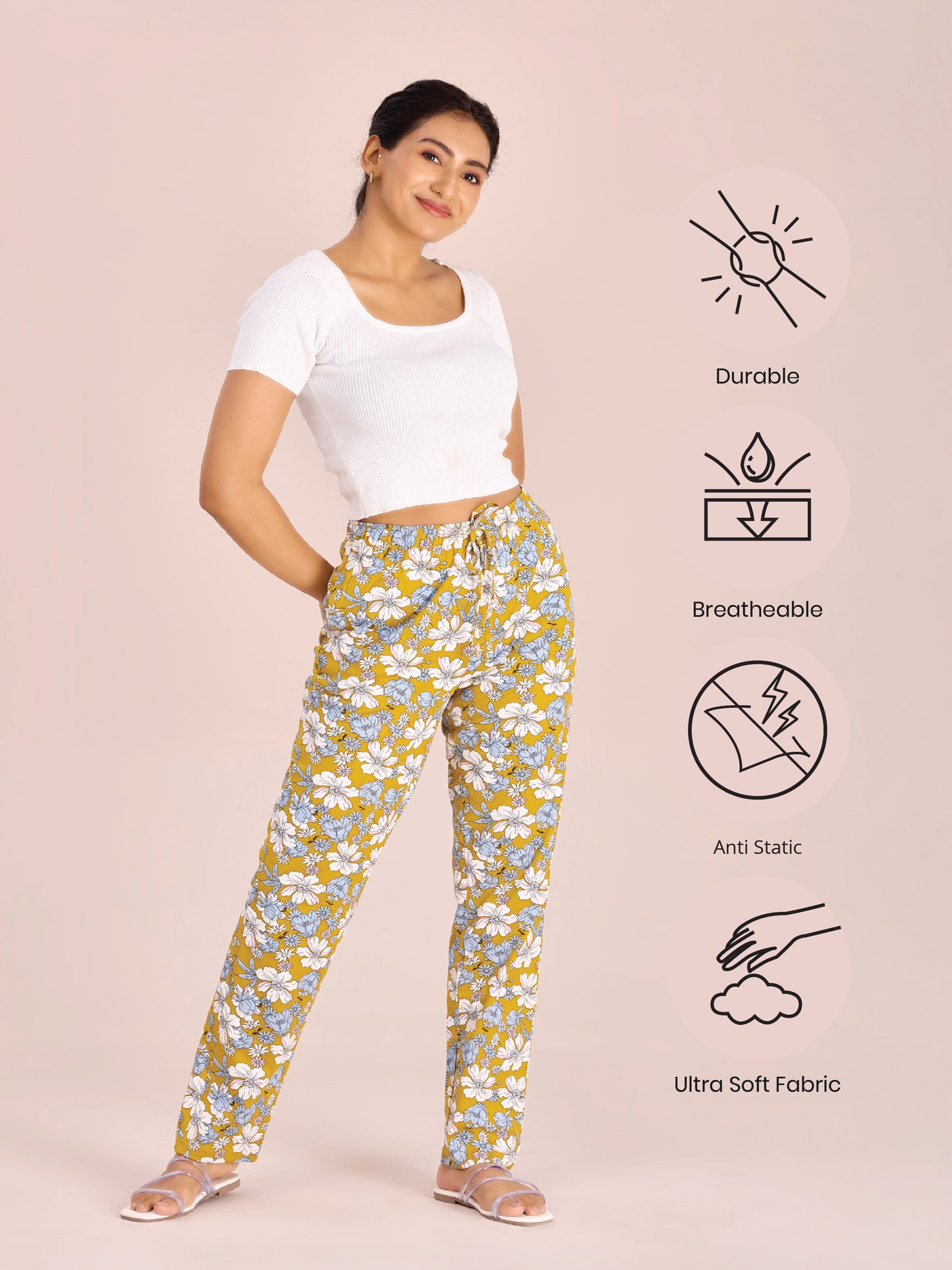 Look chic while lounging in our Printed Cotton Lounge Pants. Made from cotton, it has a elasticised waistband with drawstring closure, slant pockets & is extremely light weight.