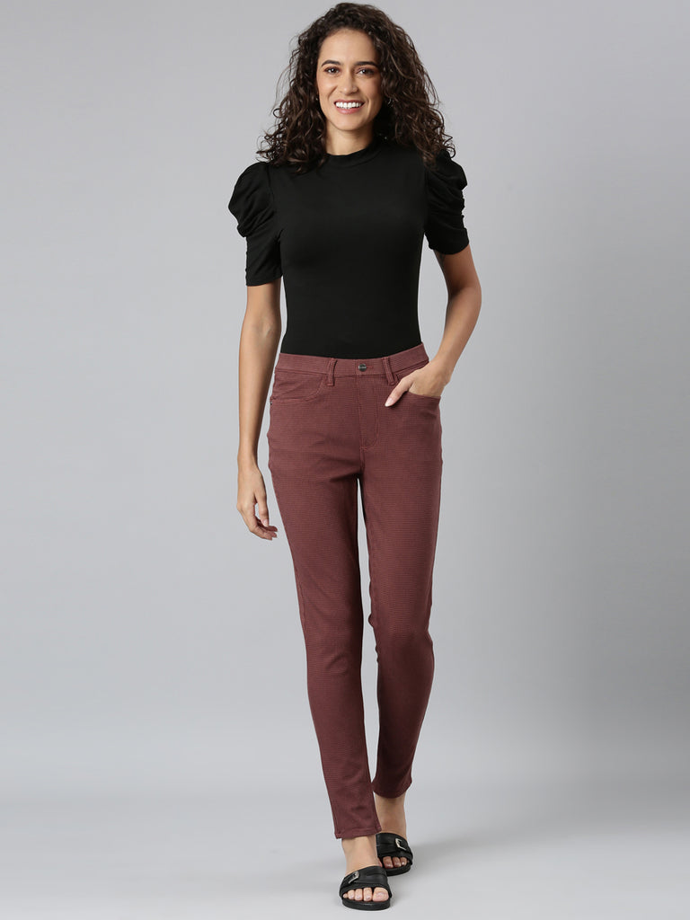 Rust Cotton Poly Stretch Stripes Printed Jeggings