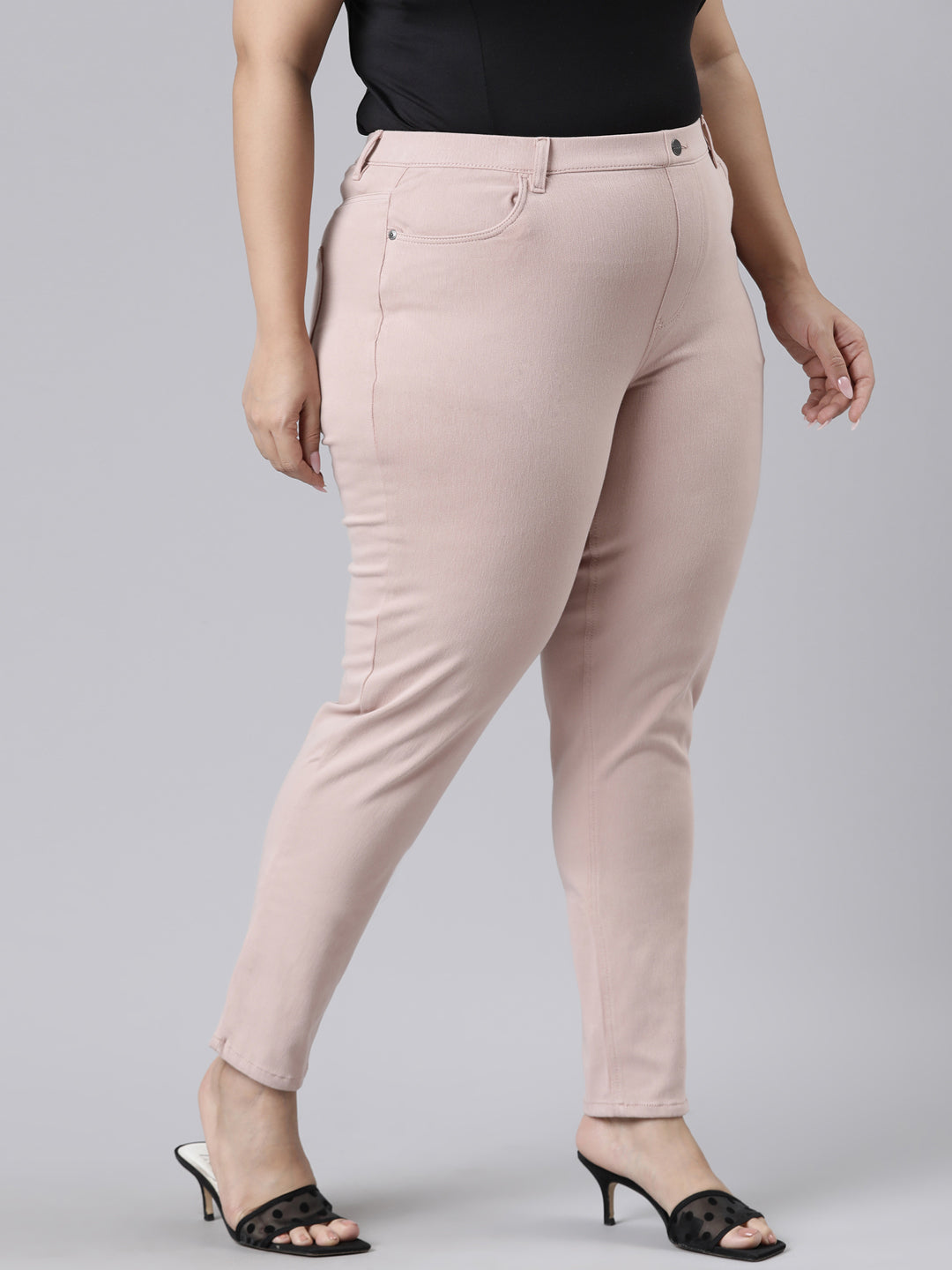 Baby Pink Cotton Polyester Super Stretch Jeggings