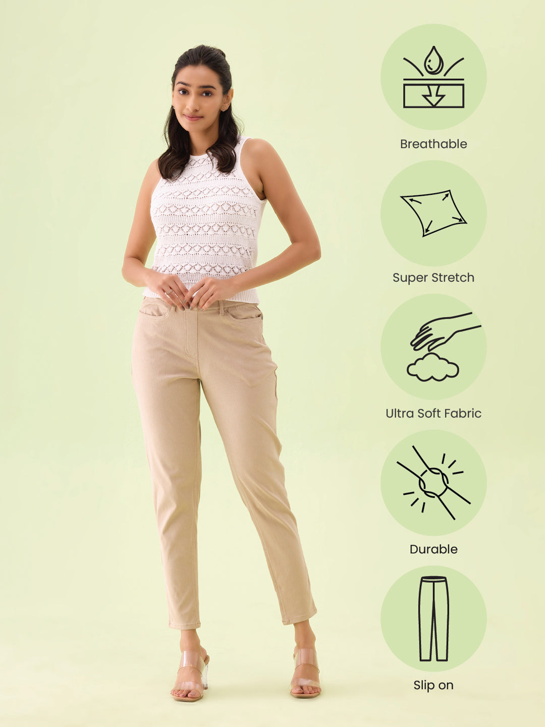 Beige Cotton Polyester Super Stretch Jeggings