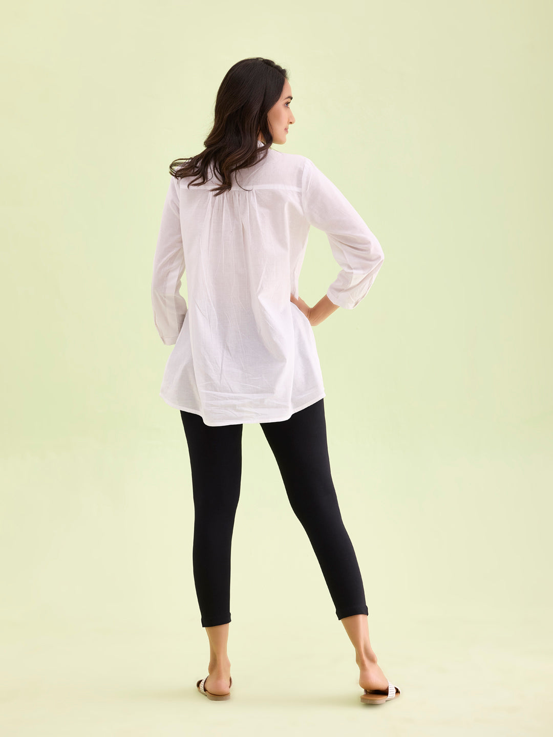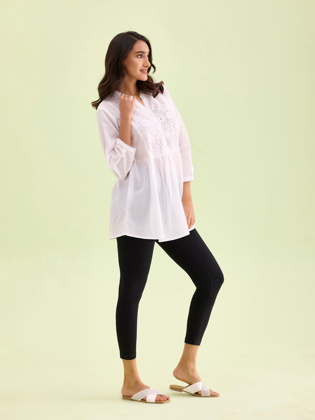 Go the ethnic way with our Solid Black Cropped Leggings. Made from Cotton & Elastane, it has a elasticised waistband, slim fit & is of 7/8th length.